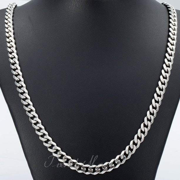 7mm 20" Stainless Steel Silver Tone Chain Cuban Curb Men Necklace