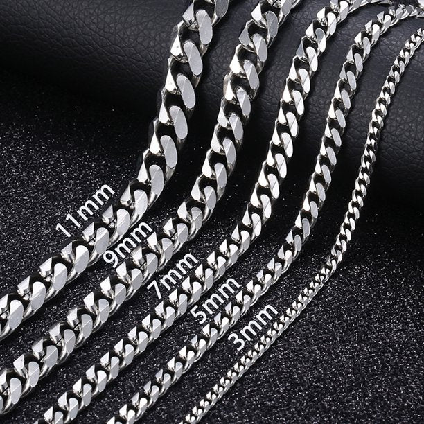 Curb chains have been a top choice when it comes to necklace chains, and heavy, chunky curb chains have a masculine touch and are especially popular among men. Smaller, thinner curb chains are feminine and delicate, pairing well with pendants.Curb chains are very sturdy and are easy to maintain and care for.The color won't tarnish or fade. It will last very long time if taken care well. This chain is waterproof,but If you want your jewelry to last longer,Please do not wear it during shower or swimming.