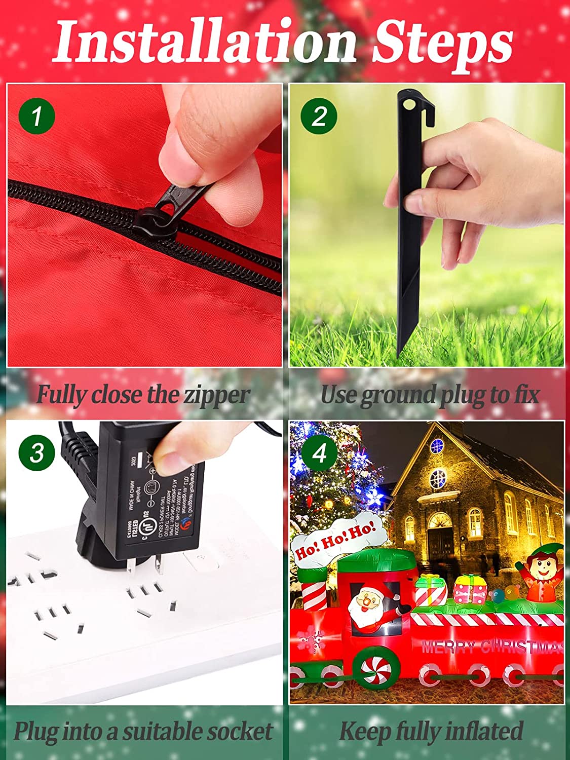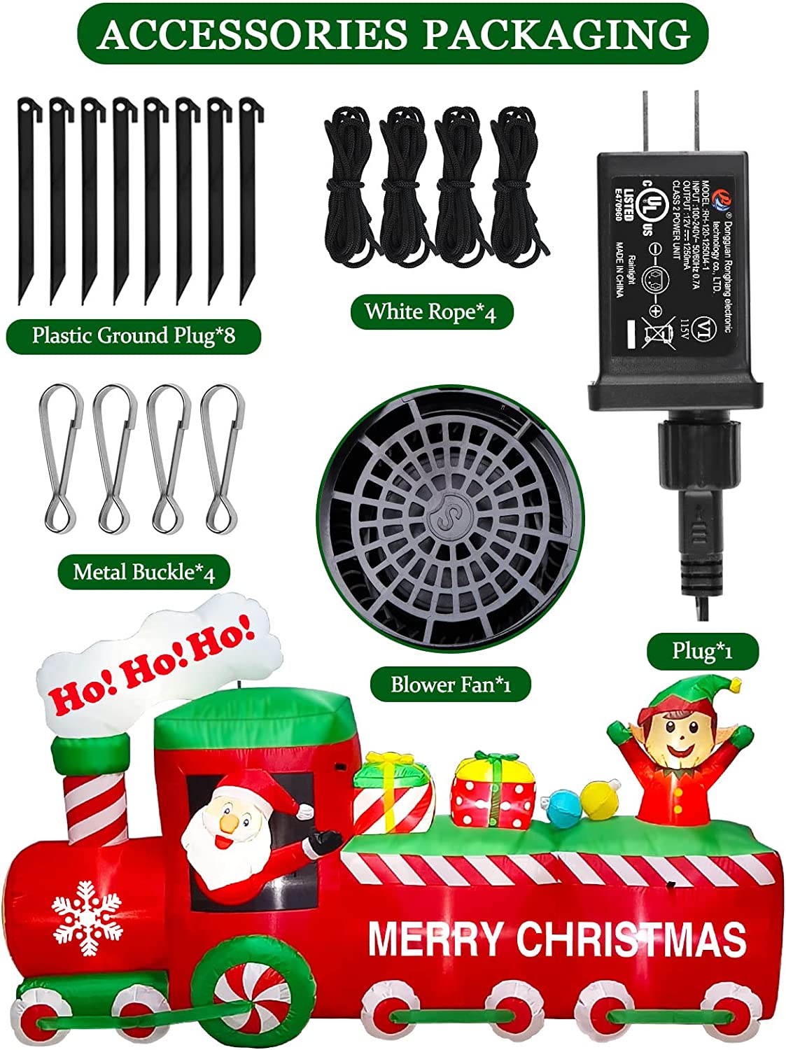 - Christmas Inflatable Train: 8FT inflatable decoration, Santa Claus and his elves drive a train with gifts to children. Display it in your yard to create a cozy atmosphere for your Christmas party, attracting more people's attention.