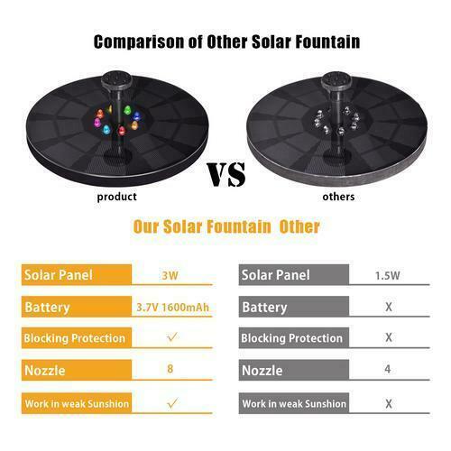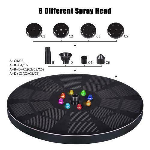 8LED Solar Powered Floating Bird Bath Water Fountain Outdoor Pond Pool Garden