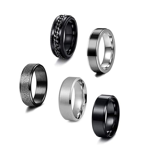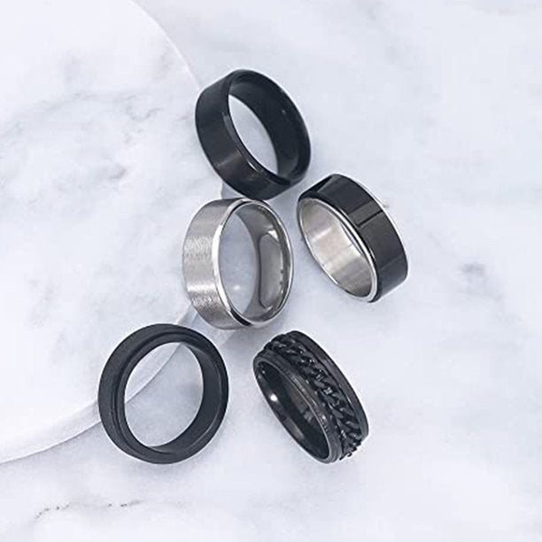 8MM 5pcs Stainless Steel Ring Mens Black Spinner Chain Rings -Size 7