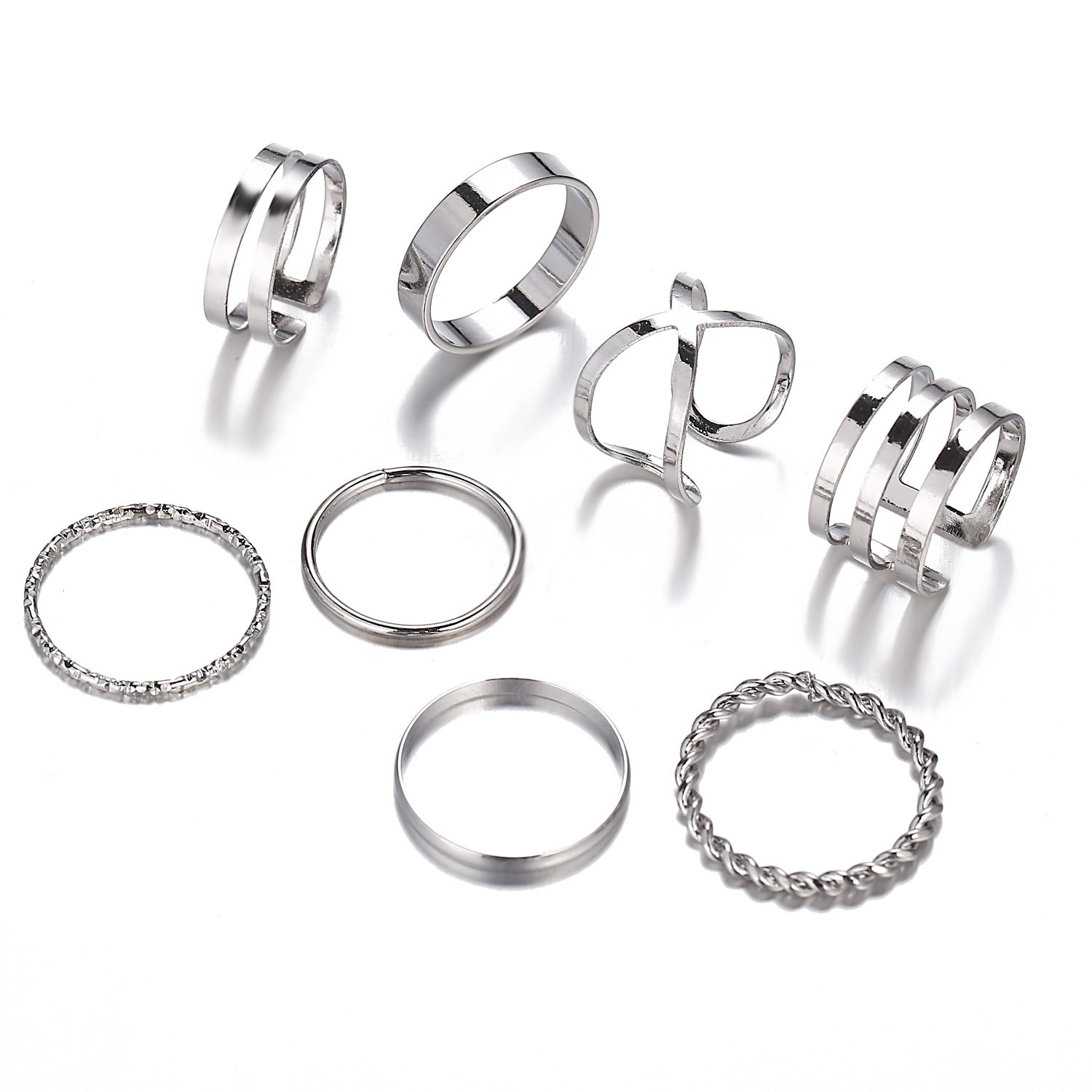 8Pcs Stackable Joint Knuckle Ring Set For Women 14K Gold Plated