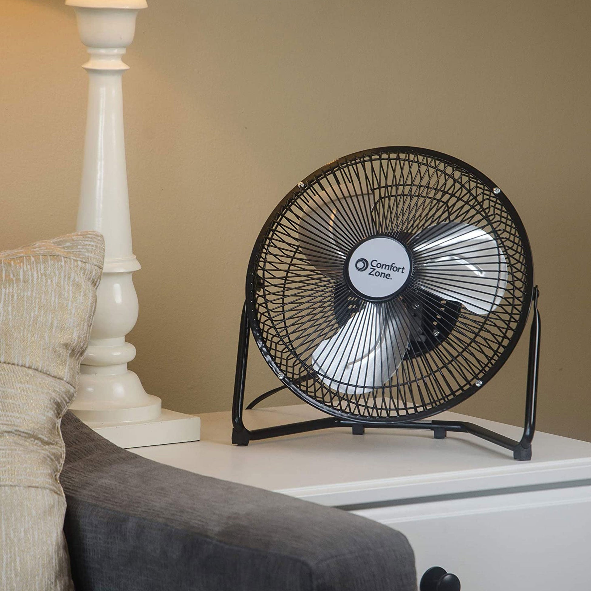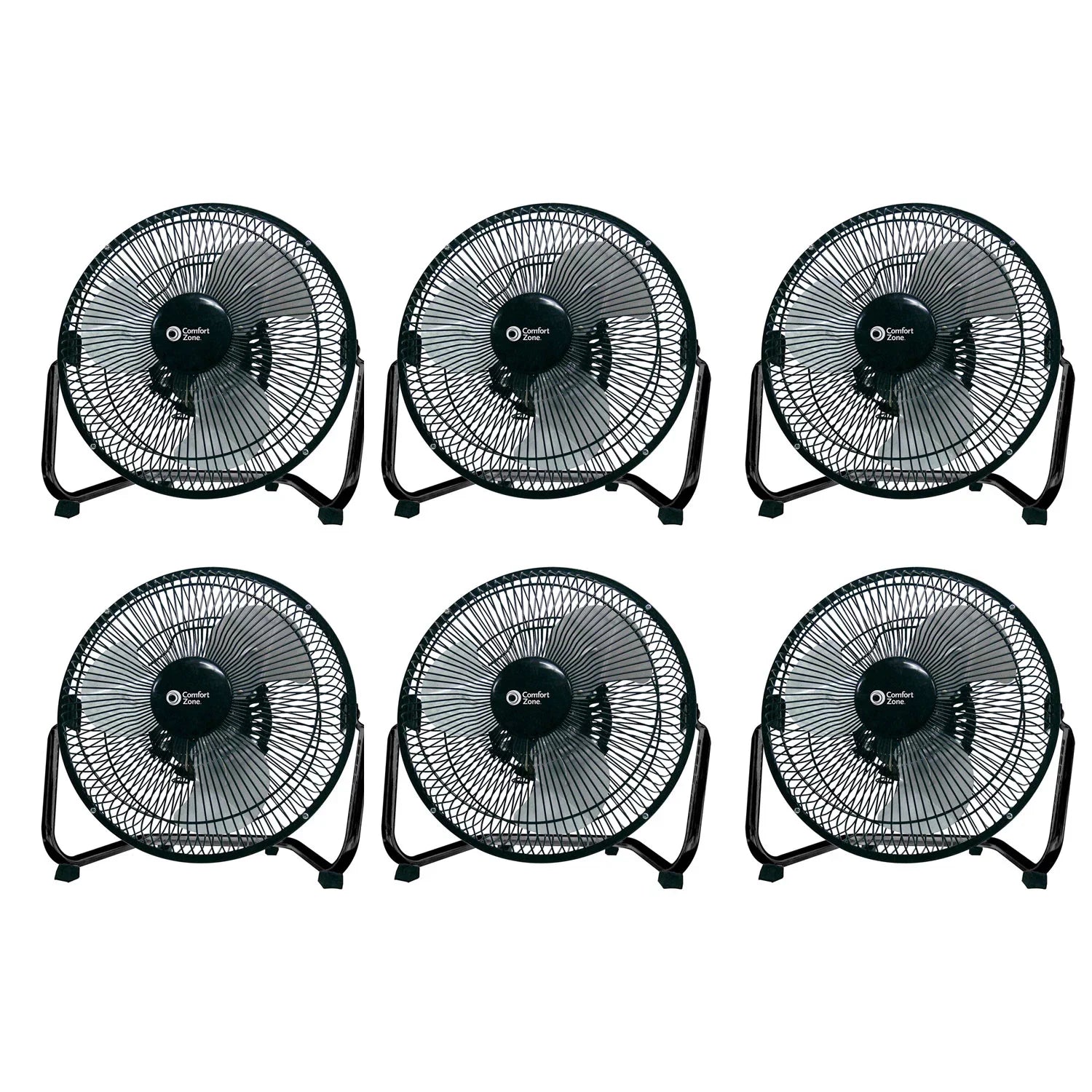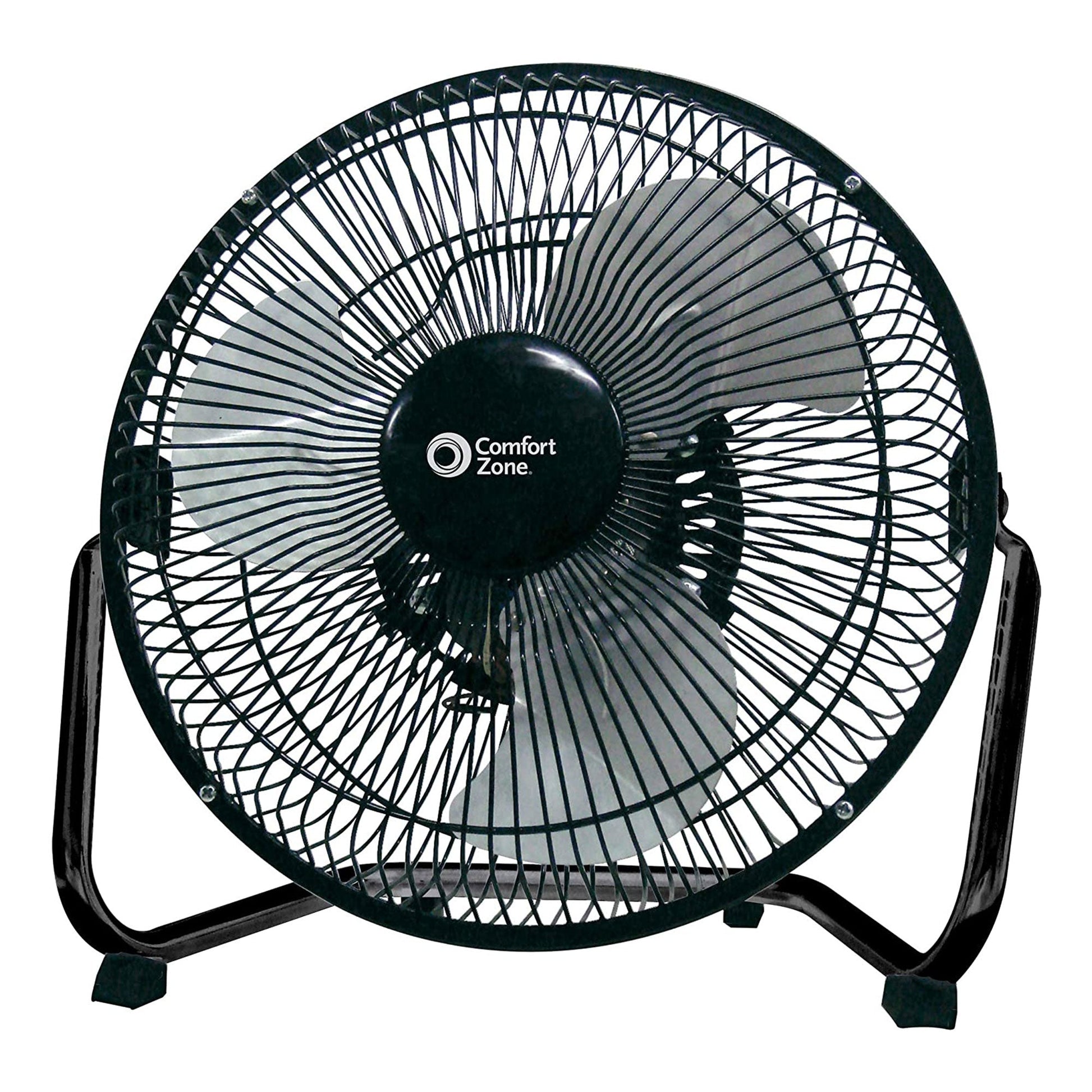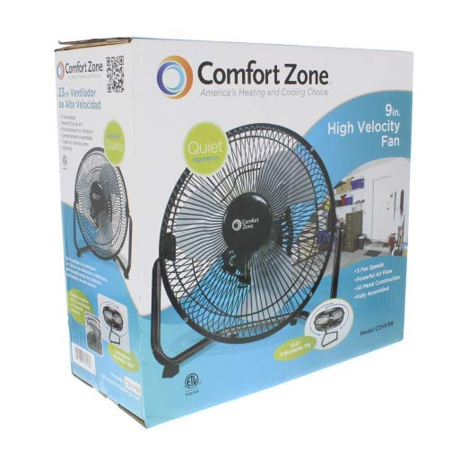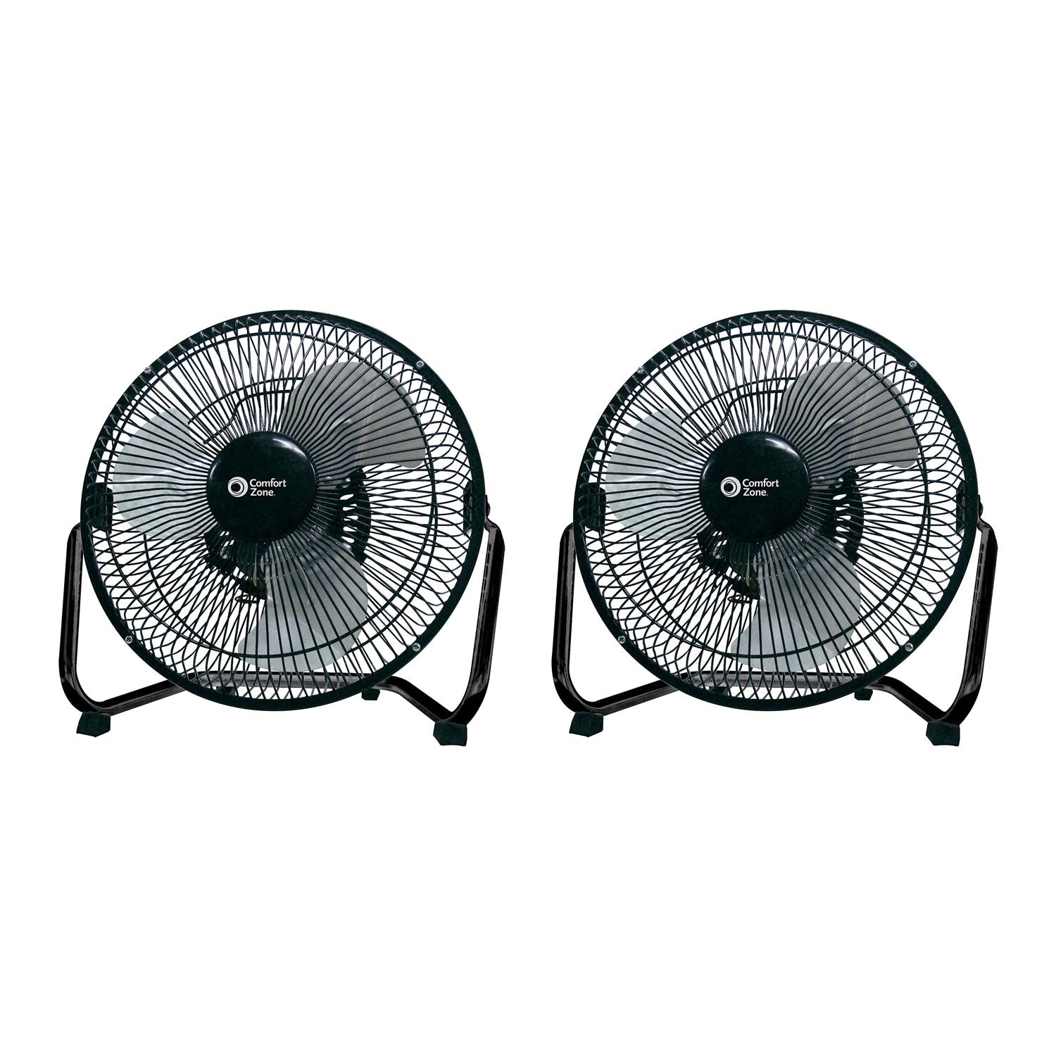 Finding a powerful fan that is small enough to fit in your room or workspace can be a challenge. For a compact and high-velocity fan that is sure to satisfy your cooling needs, try this 2-pack of 9-Inch, 3-Speed High-Velocity Floor Fans by Comfort Zone. This small indoor fan features 3 speeds that are adjustable from a knob on the back of the fan, allowing you total control over your cooling. The base of this all-metal fan features sturdy rubber feet to minimize annoying vibration sounds, providing quiet and efficient cooling while you work. This compact fan also features a 180-degree tilt option that allows you to adjust the fan to varying angles between 0 and 180-degrees to optimize airflow to where you need it most. Although this fan is considered a floor fan, the compact size of this unit means the fan will also fit on small tables or desks. Move this fan from room to room easily with the metal carrying handle built into the back of the fan. For an adjustable, compact floor fan that is designed for long-term use, try this 2-pack of 9-Inch, 3-Speed High-Velocity Floor Fans by Comfort Zone. *- 2-pack of compact 9-inch high-velocity fans that are the perfect small industrial indoor fans for cooling any room in your home or garage *- Choose between the 3-speed settings and adjust the airflow with the knob on the back of the fan *- The 180-degree tilt feature allows you to set this fan on the floor and adjust the angle of the airflow *- Constructed from durable metal that is designed for long-term use *- Rubber feet on the base prevent the fan from sliding around and the safety grill protects you from moving blades *- Carrying handle on the back make it easy to transport this utility fan from room to room in your home *- Material: Metal *- Color: Black *- Dimensions (D x W x H): 5 x 16.5 x 23.5 inches *- Diameter: 9 Inch *- Weight: 1 pound *- Quantity: 2