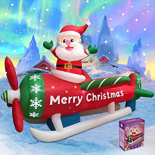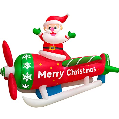 - 【Unique design】KOOY's inflatable Christmas yard decorations is very cute, the santa clause driving a airplane ; When plug it into a standard electrical outlet, it will inflate in minutes; The super bright colored LED light will illuminate your yard and easily attract the guests, friends, and kids' attention so that can be the most attractive & decorating yards in your neighbors.