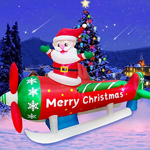 9FT Christmas Inflatables Santa Claus on Airplane w/ LEDs