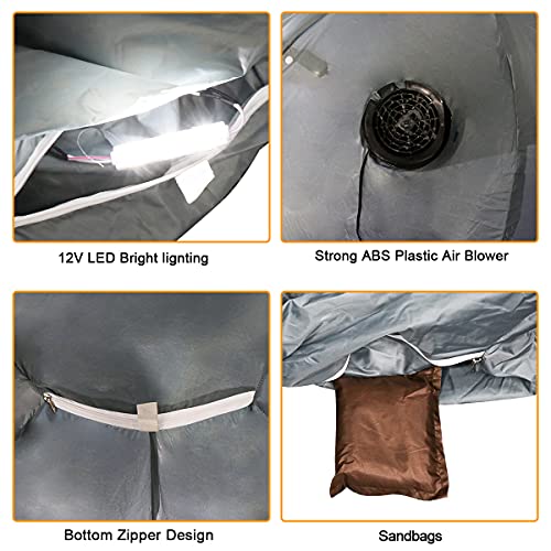 - Includes necessary accessories for outdoor setup. Not only an internal blower and light, but also 5 ground pegs and 2 tether ropes that makes it more stable for outdoor set ups.