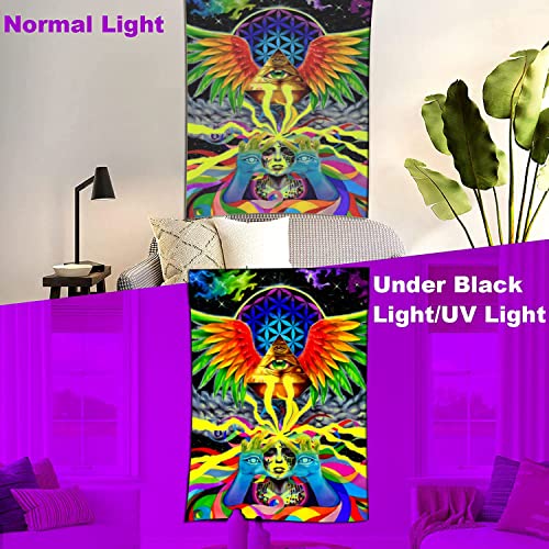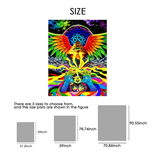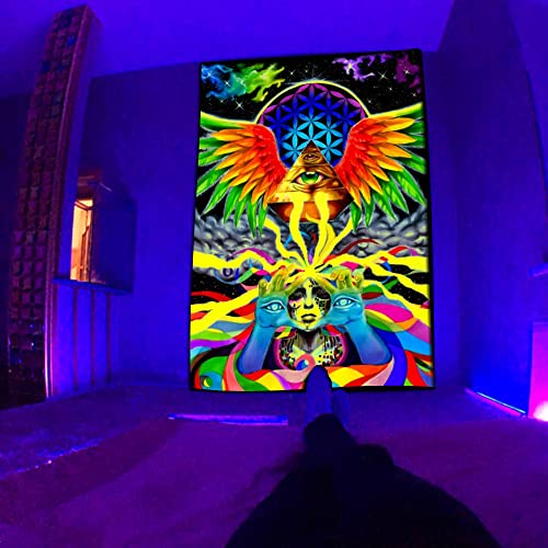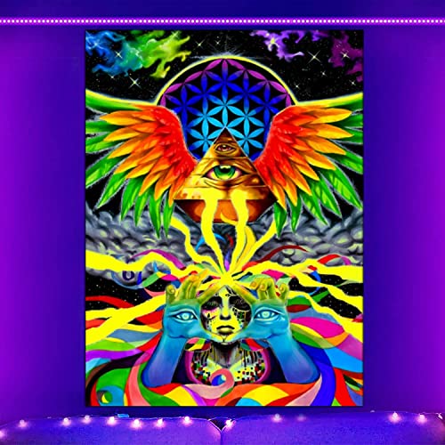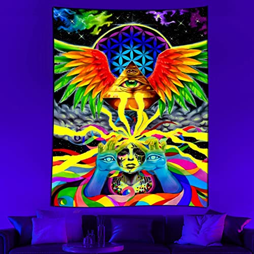 All-seeing eye fluorescent tapestry, omniscient eye, aurora color timberwolf blacklight tapestry,