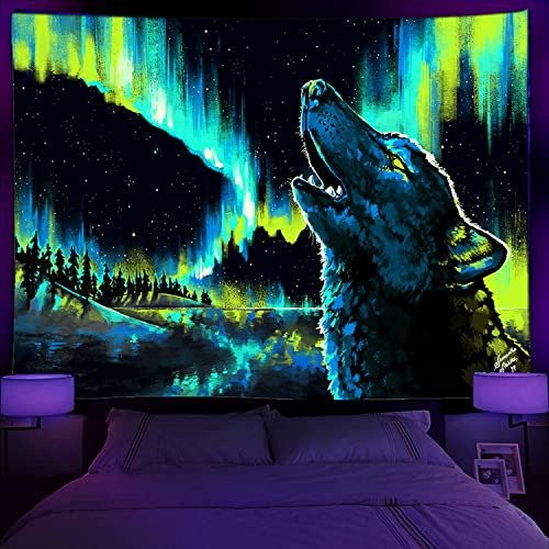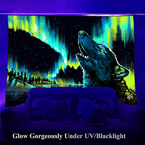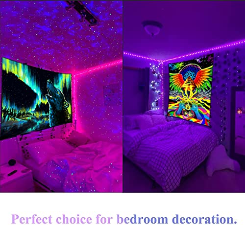 - 1. This blacklight tapestry has a very interesting function, can fluoresce under the illumination of blue light or purple light, during the day it is an ordinary tapestry, turn on the purple light at night, it becomes a fluorescent tapestry
