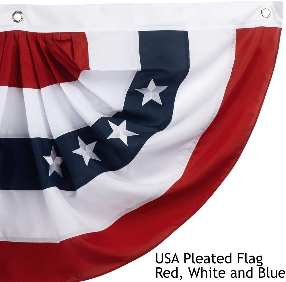 - WATERPROOF- The USA Pleated flag is a patriotic stars and stripes with fade-resistant red, white and blue. The color is very clear and vivid. The us bunting can resist the invasion of outdoor wind. After being fixed, it will not be torn to ensure long-term flight.
