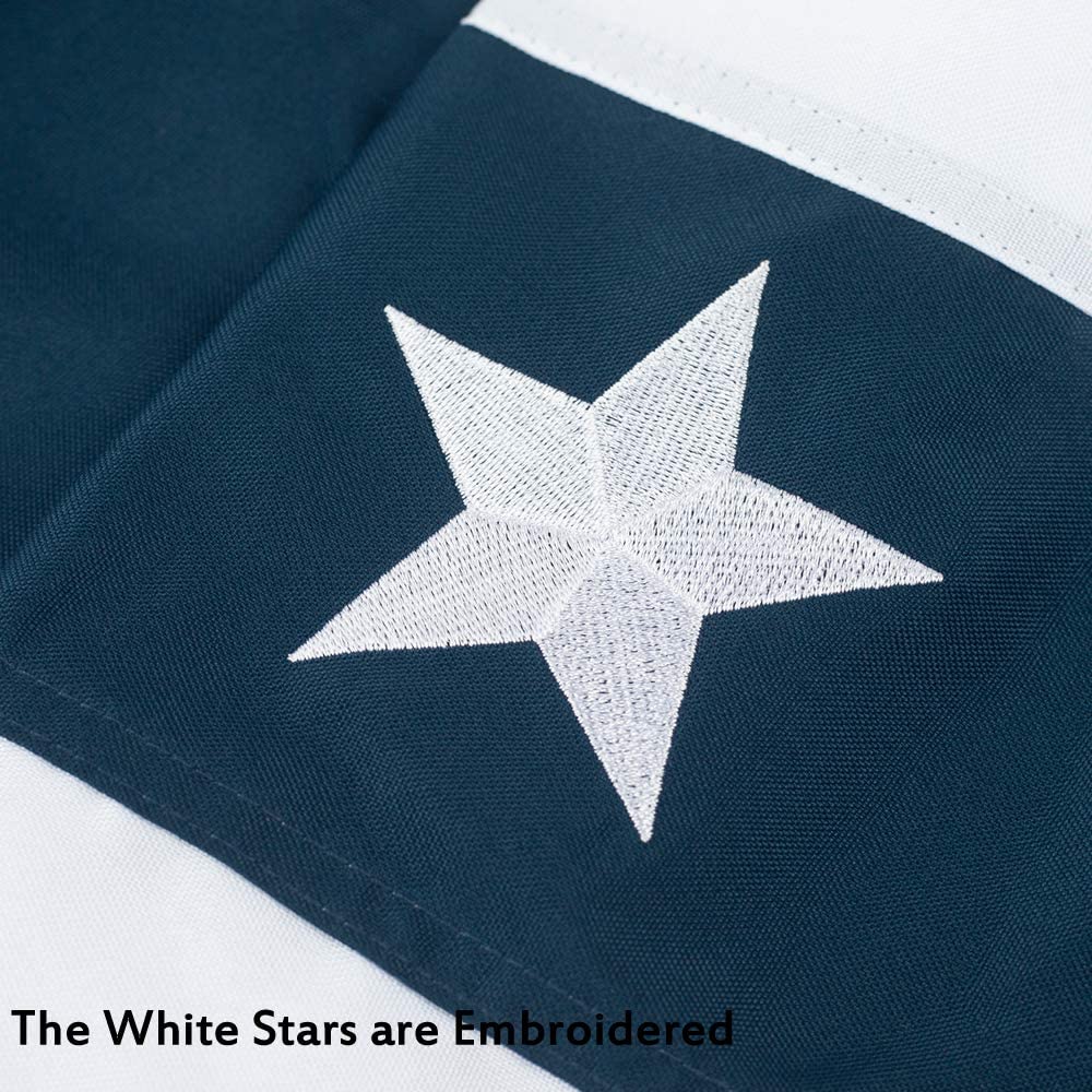 - HIGH QUALITY - US Flag is made of durable polyester. The edges are stitched with double layers and reinforced with three brass grommets.