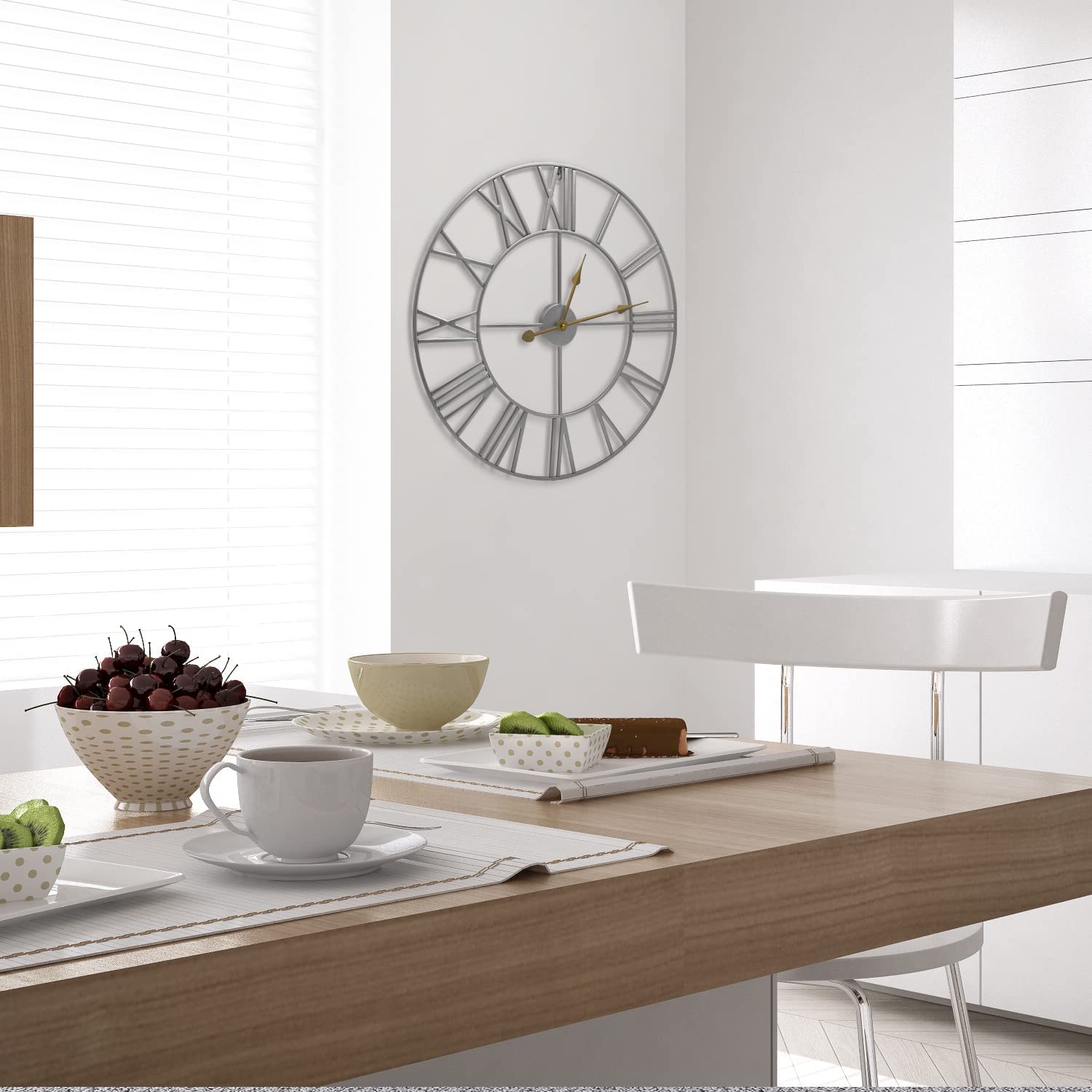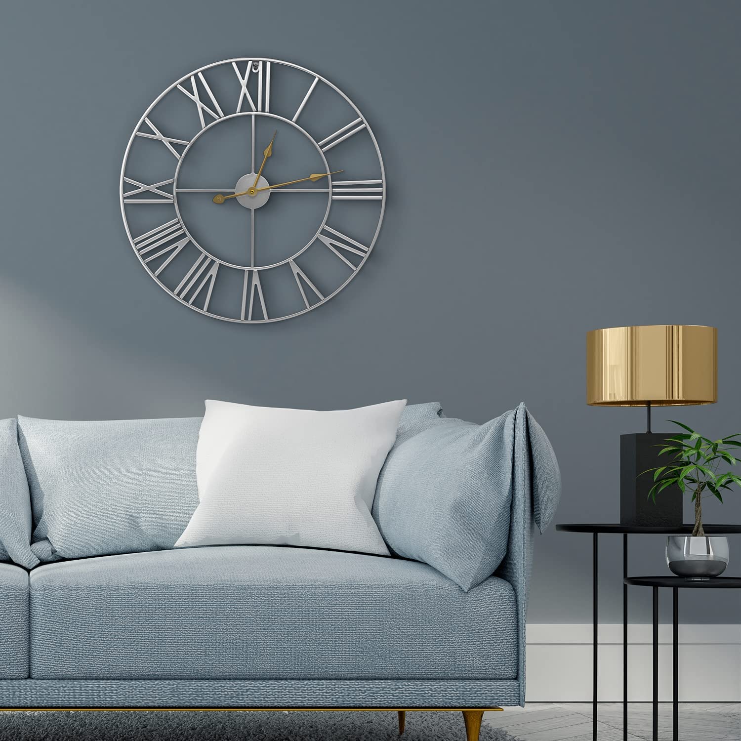 Analog Wall Clock - Roman Numeral Style, Battery Operated Decorative Clock - 24 Inches (Silver)