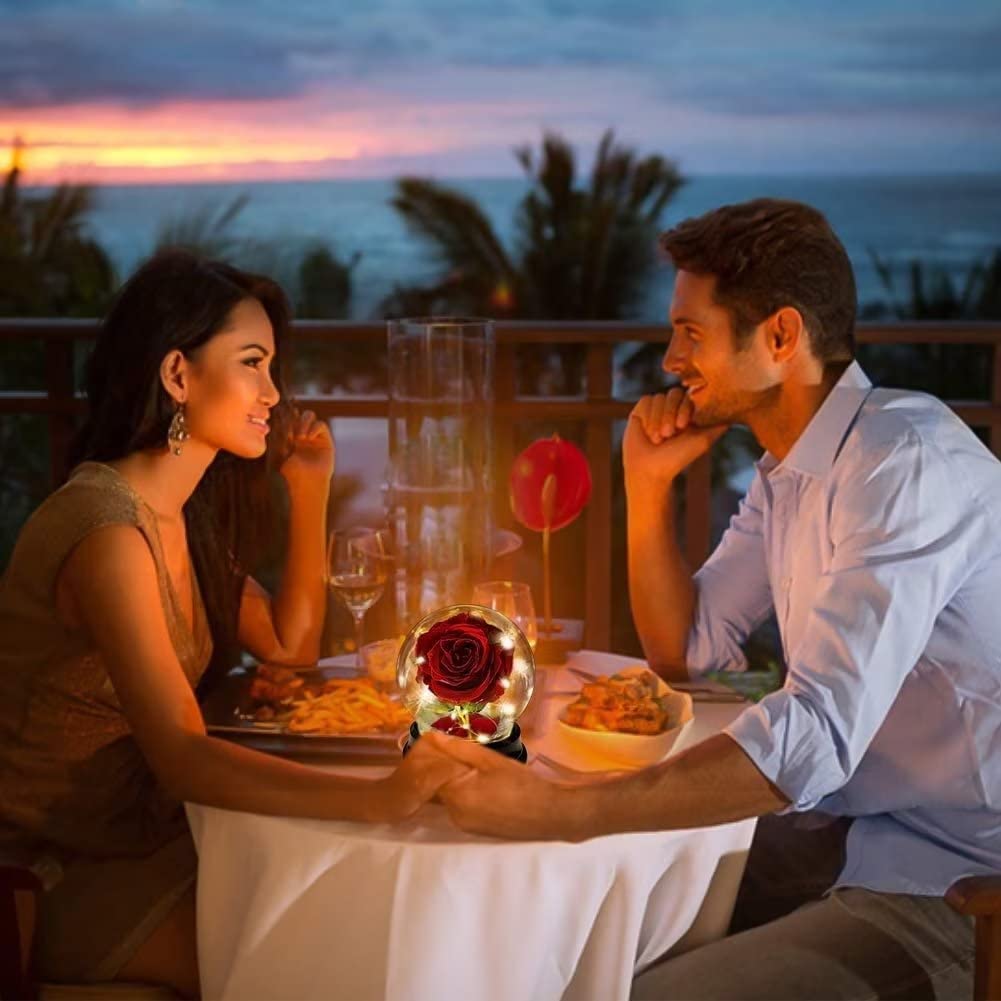 Artificial Flower Rose Light Up in A Glass Dome, Women Gifts for Her, Valentines, Anniversary, Mothers Day