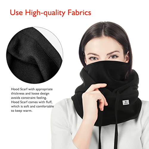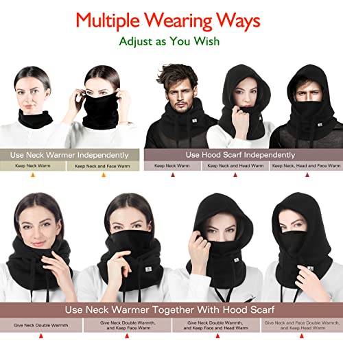 - ❤️[Warm and Breathable]: Hood Scarf with appropriate thickness and loose design avoids constraint feeling. Protect your face against cold wind, and allow you to adjust the elastic cord in the windy day. Traditional Balaclava makes your heads taut and keeps your hair messy, isn’t breathable and is hard to wear. Warm Neck Warmer comes with thicker fluff. Soft material is effective to warm neck and face. Compact but slightly elastic design allows you to adjust the coverage on the face and neck.