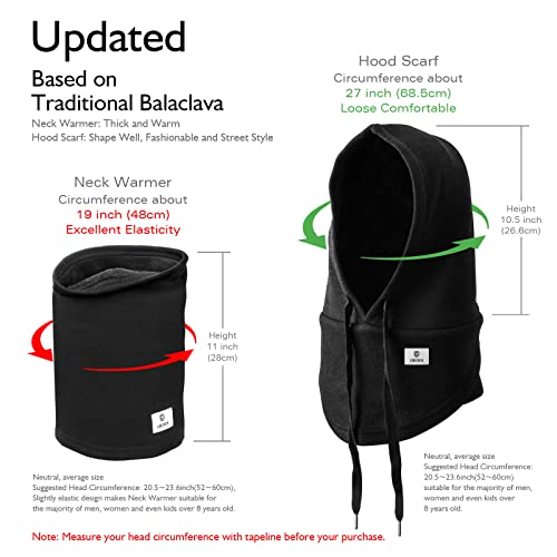 - ❤️Our Balaclava Hood Scarf+Neck Warmer suit is updated based on traditional Balaclava, which provides convenient warmth during trip in the cold winter.