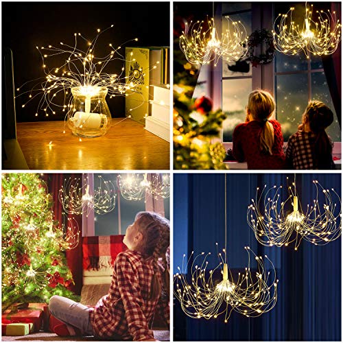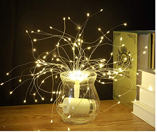 - 【OUTDOOR CHANDELIER】The firework light is Included 60 branches copper wire, contains 180 warm Light SMD leds,4 x AA Batteries operated chandelier(Batteries NOT Included)