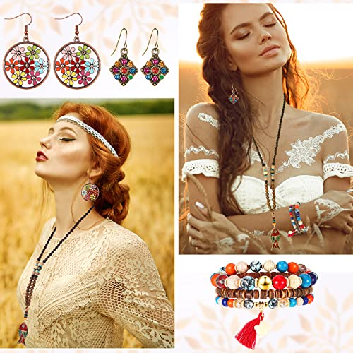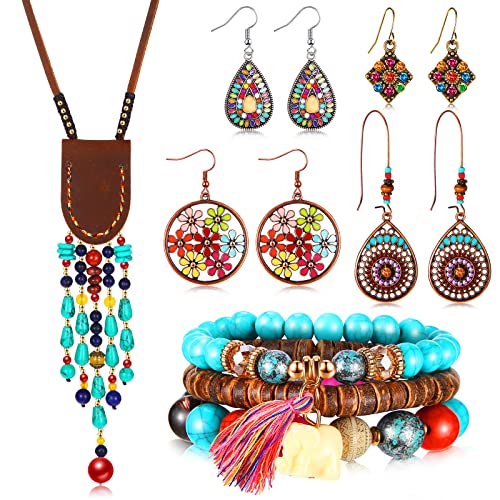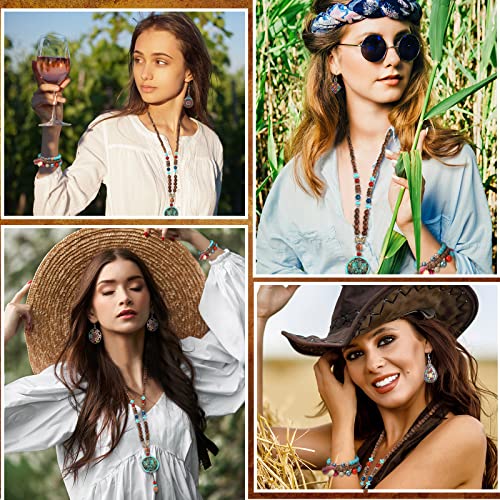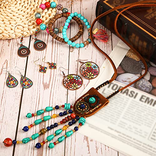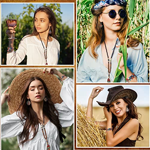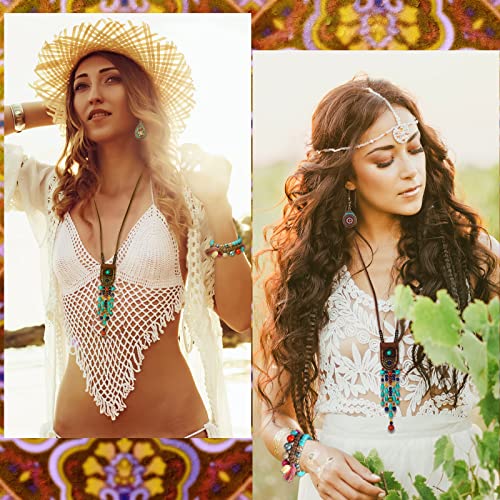 - Nice Combination: package includes 1 multi layer beaded tassel bracelet, 1 boho necklace for women and 4 pairs of retro bohemian rhinestone earrings, with good combination, meeting your dress up needs, full of bohemian style making you look shining and attractive