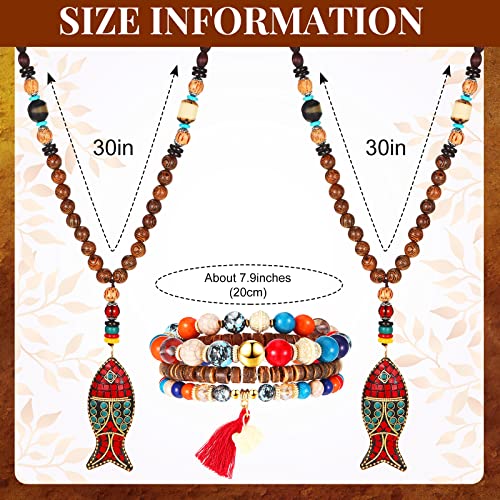 Beautiful 6 Pcs Boho Jewelry Set Vintage Dangle Earrings Beaded Bracelets Animal Tribe Beads Necklace for Women