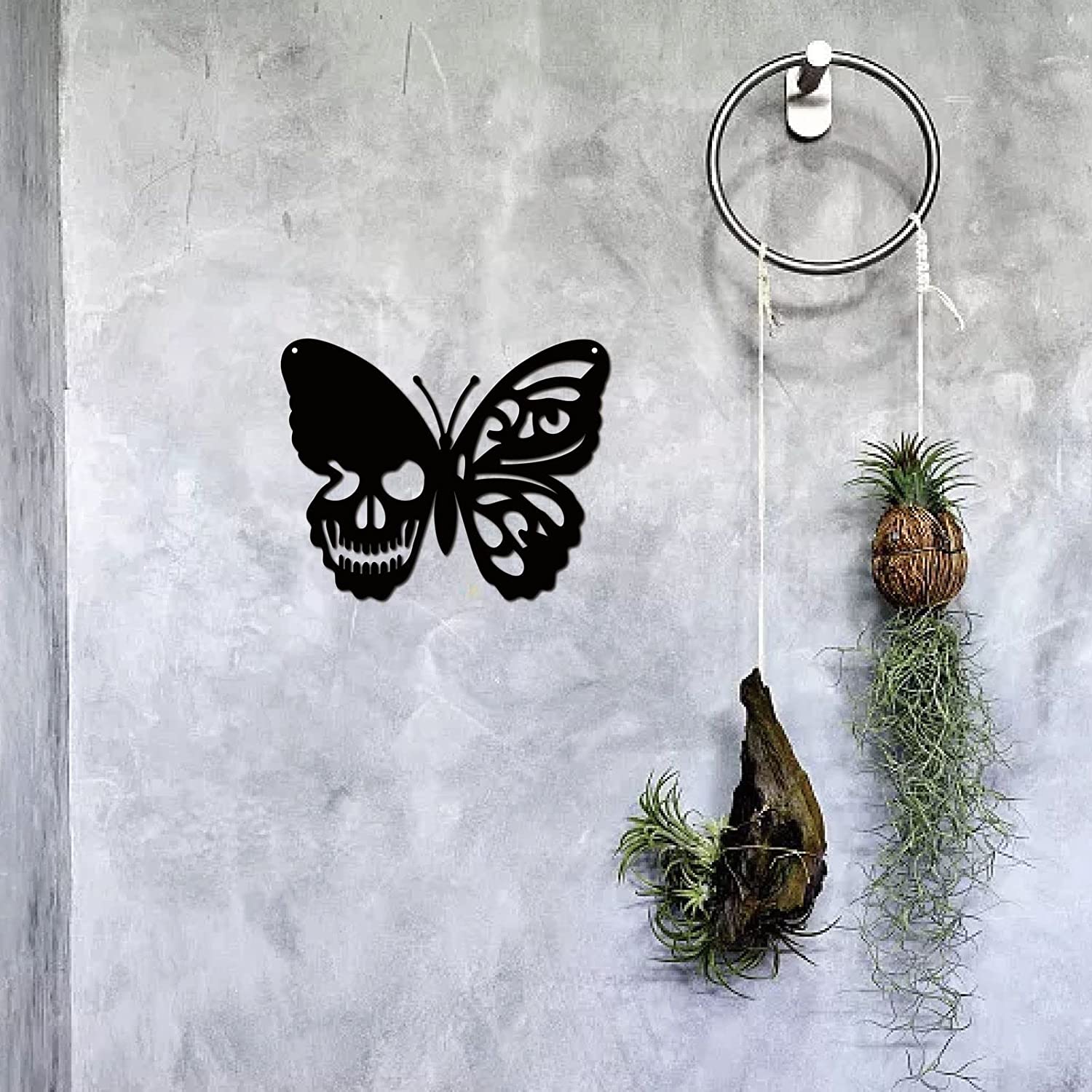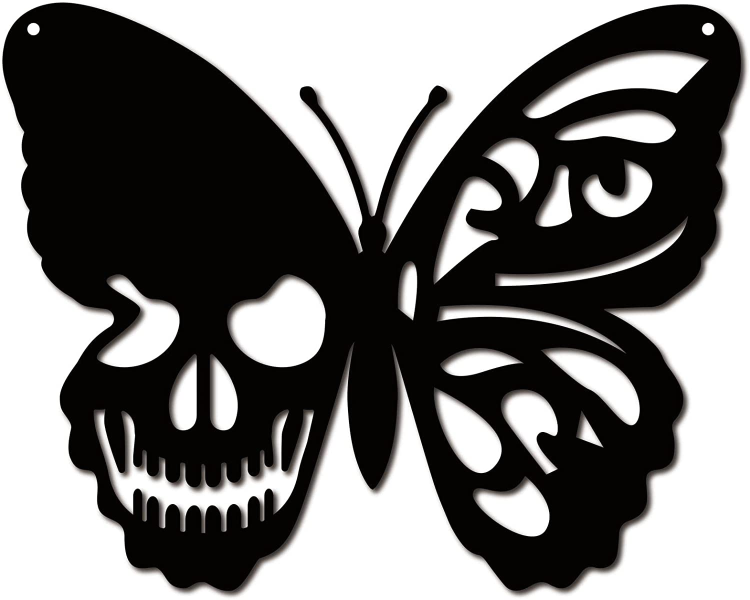 - [BUTTERFLY WITH SKULL]: Butterfly symbolizes freedom and beauty, Skull means to enjoy life. Hang this metal wall decoration at home and always remind yourself to remember to pursue freedom and beauty, and learn to enjoy life.