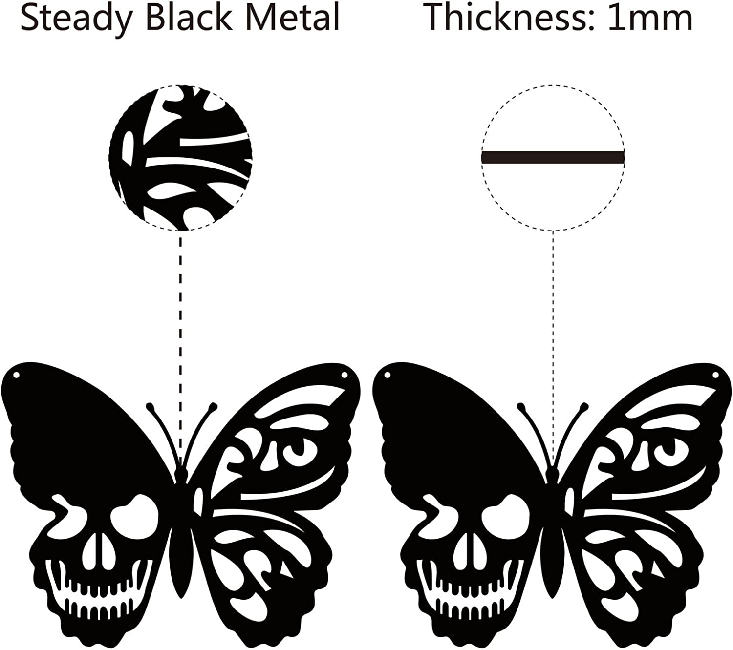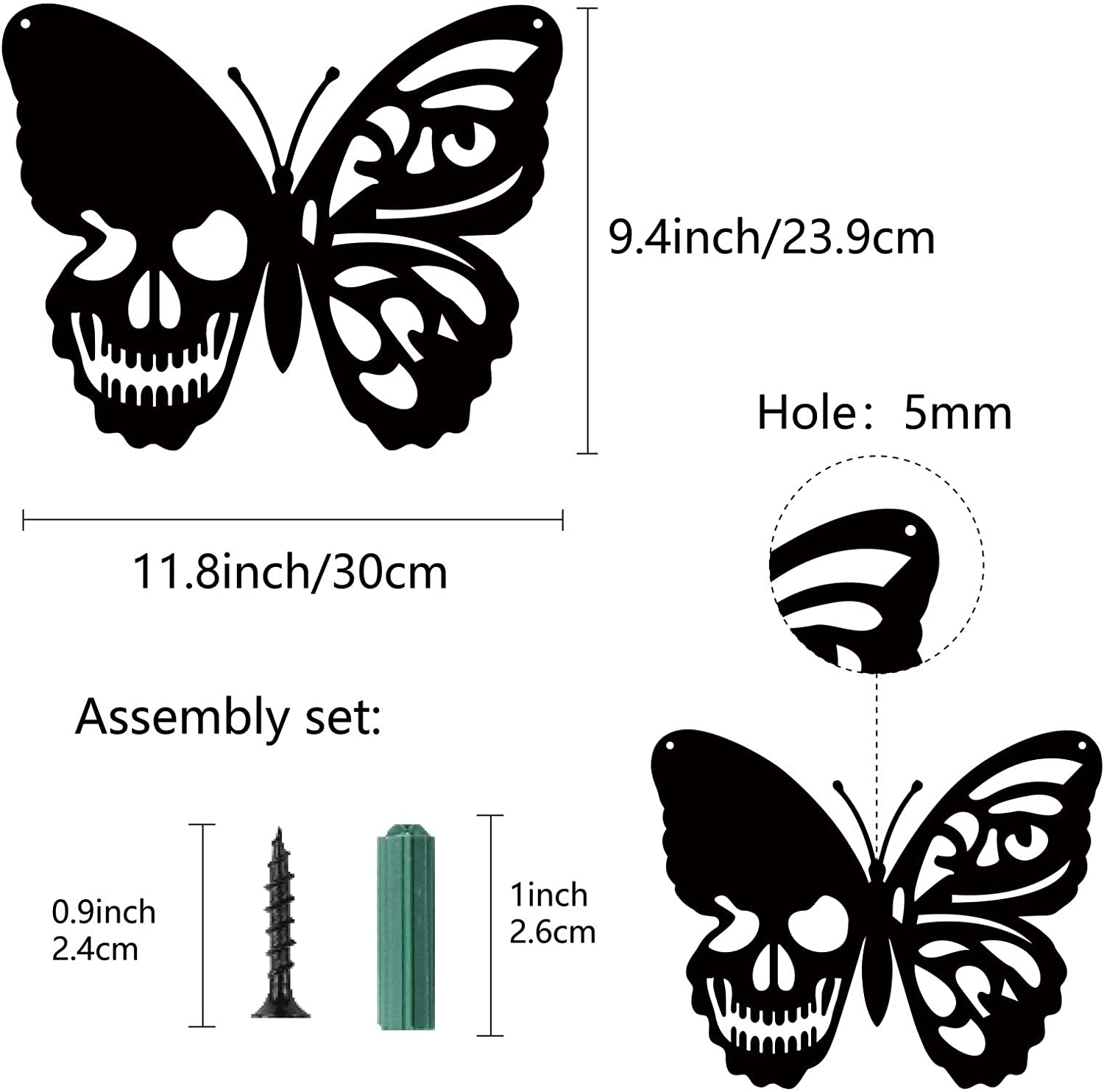 - [PACKAGE INCLUDING]: 1pc x butterfly with skull metal wall art with 2 hole, 9.4inch long, 11.8inch wide (23.9 x 30cm),thickness: 0.1cm, hole: 0.5cm; 2pcs x screw anchors; 2pcs x screws.