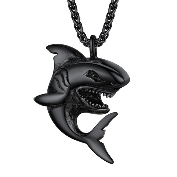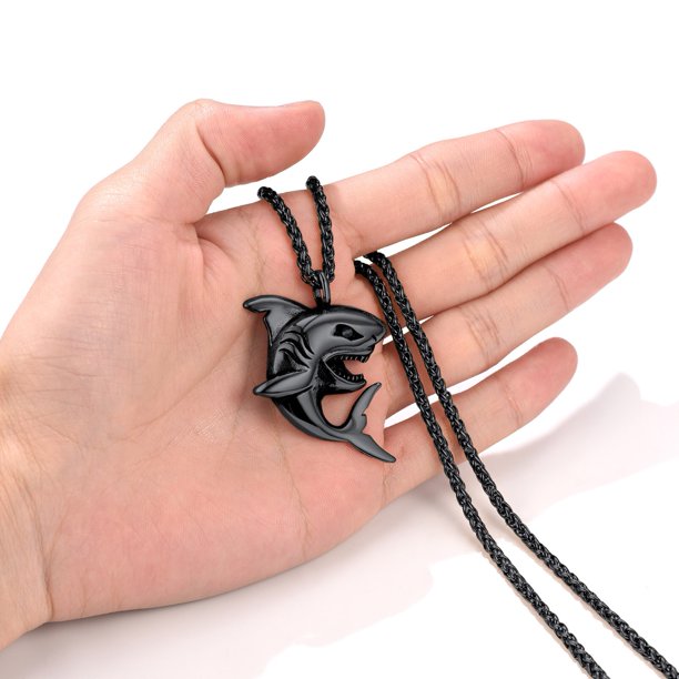 Black Shark Pendant Chain for Men Black Punk Cool Necklace
