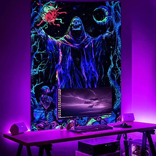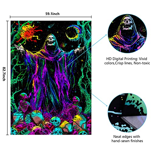 - BLACKLIGHT/UV REACTIVE:The blacklight skull tapestry glows brightly in black light and the vivid colors create a stunning visual experience. In normal light, the colors are full and vivid.