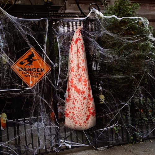- You will get - Uninflated dead victim prop*1 + bloody bag*1 + a rope long 13.1ft+ spider web.