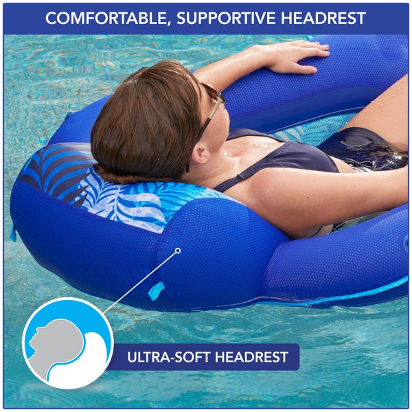 Easily inflate and deflate this Adult luxe Unisex pool float with the Duo Lock Valve Inflation System. Soft-to-the-touch Cool Weave mesh fabric is quick drying and allows water to drain easily, helping in the prevention of mildew and provides cooling relief while lounging in the sun. Pick up and go at a moment's notice with the utmost of ease as this lounger conveniently folds and includes handles for your travel comfort. Unwind and enjoy the supportive comfort of the cushioned headrest and take advantage of the convenience of the integrated drink holder as you float on by. When inflated, the Ultimate Luxury Recliner measures 70” L x 36” W. It is recommended for ages 15 and up and has a weight capacity of 300 lbs. *- Ultra-Comfortable, Extra-long lounge *- Cool Weave mesh fabric covers lounge and seating area *- Comfortable, supportive headrest *- Unisex *- Integrated drink holder and carry handles *- Easily inflates and deflates with the Duo lock Inflation System *- Lounge folds for portability and storage *- Inflated size is 70” L x 36” W (178cm x 91cm) *- Weight capacity 300 lbs. *- Recommended age: 15 years and up