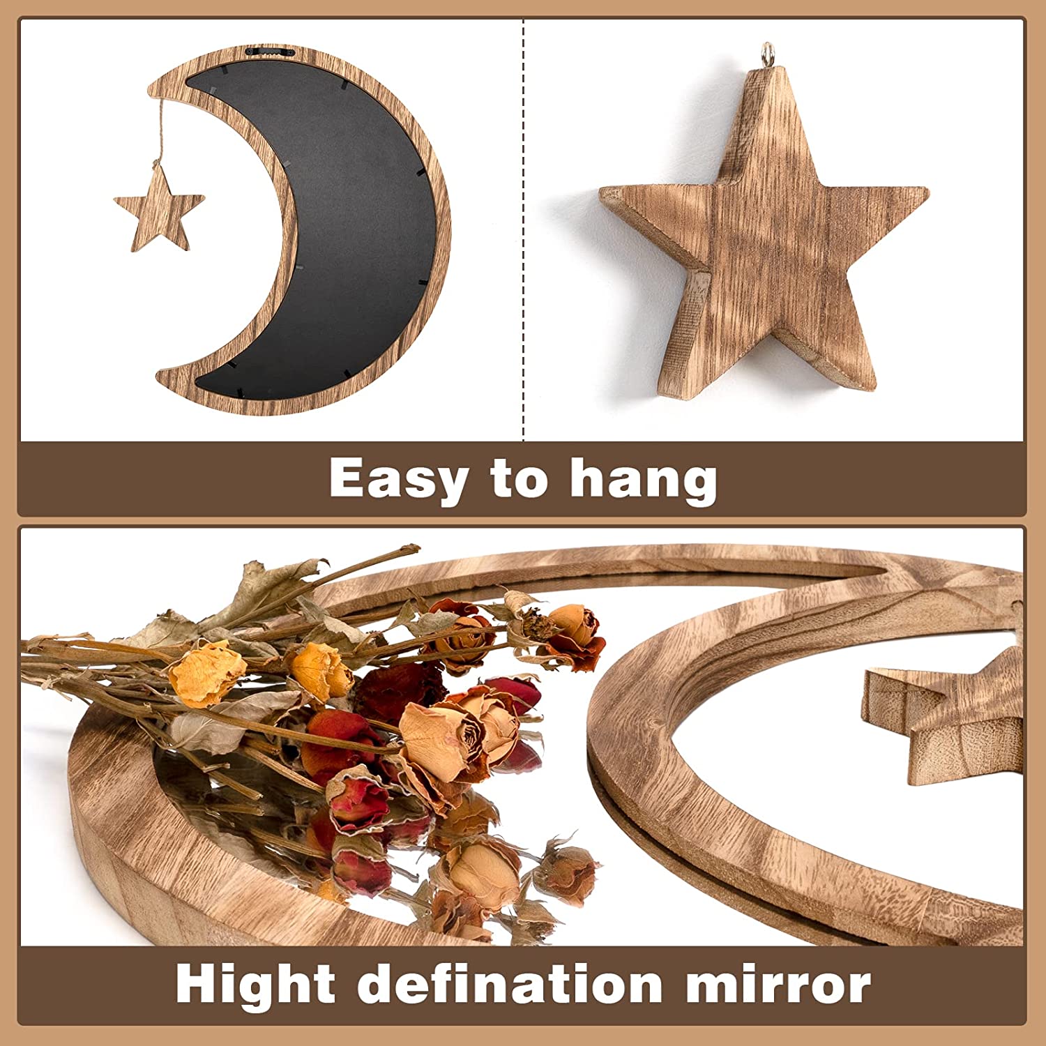 - Perfect for Boho Decor Style: This cute mirror will a nice addition on your boho decor style wall, it will goes well with your others pieces. Also these mirrors are the perfect complement to all moon lovers' rooms and are a great spiritual home decoration! What's mirror, there is a beautiful sunburst mirror at store,which is perefct to get them together on the wall.