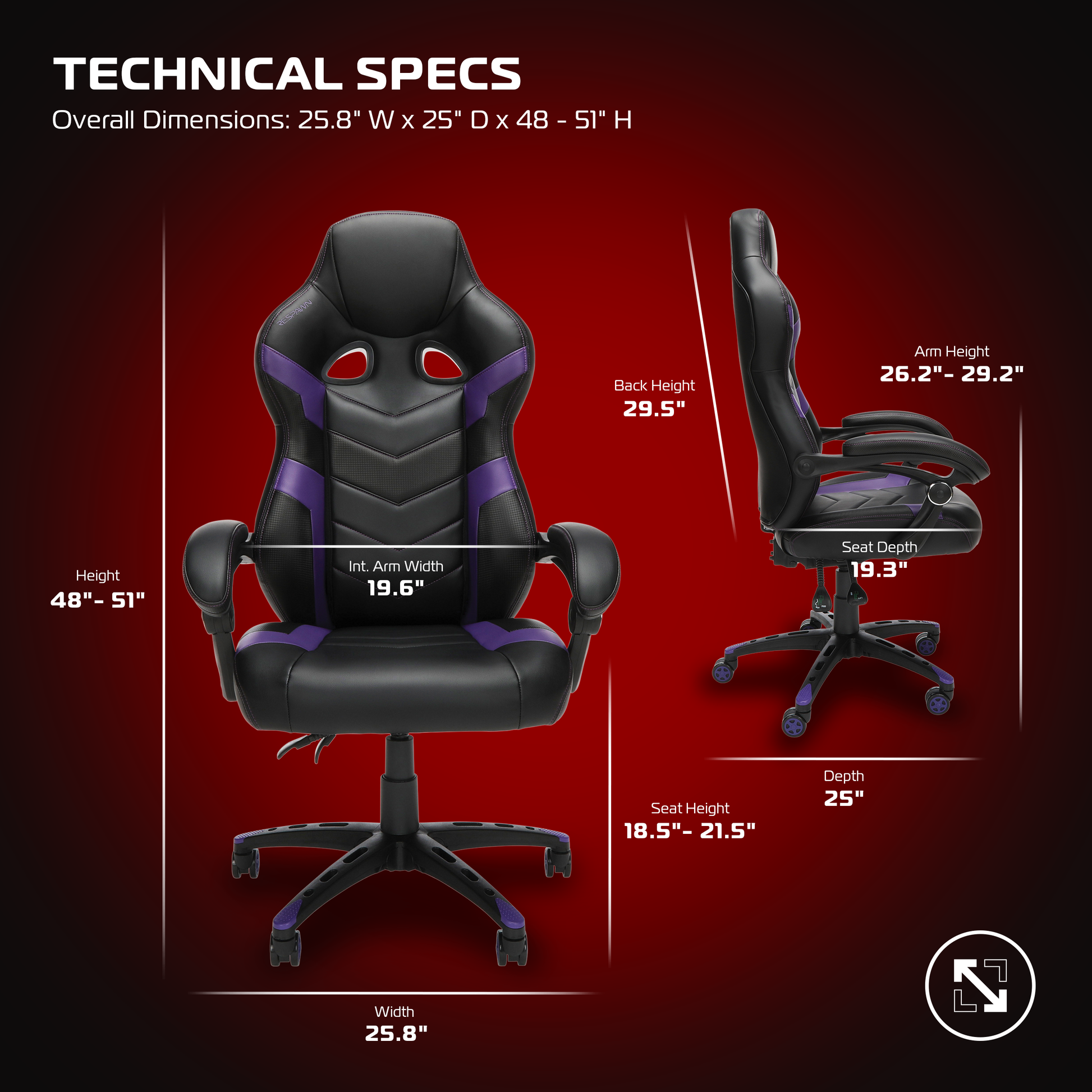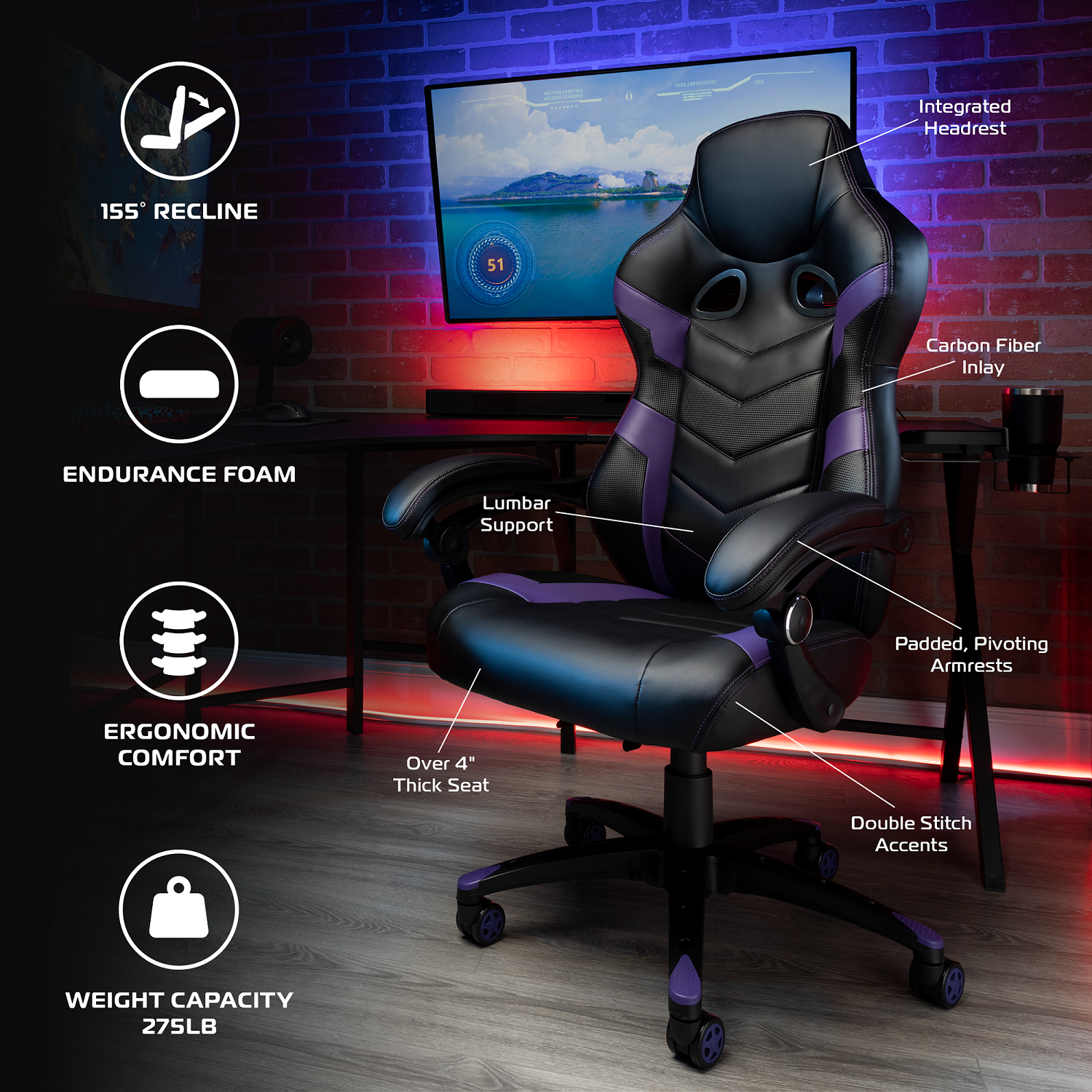 Bonded Leather Racing Style Gaming Chair, Reclining Chair, Purple