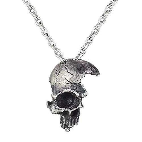 Broken Damaged Half Face Skull Pendant Necklace w/ Chain (Silver)