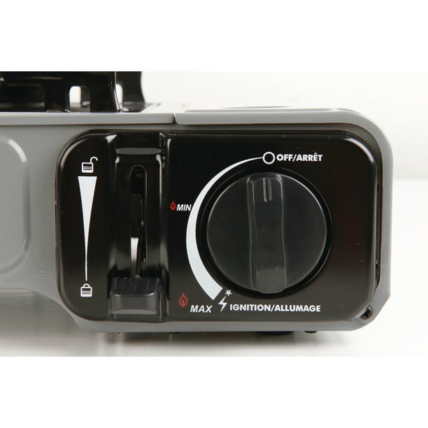 With an ultra-portable design and included carry case, this stove is ready for any camping adventure and quickly sets up on any outdoor tabletop, supporting up to a 10-inch pan. Attach an 8.8 oz. Butane cylinder, light the automatic matchless ignition with the turn of a knob, and in no time, you're cooking with up to 7,650 BTUs of power for up to 1.25 hours. Wind baffles shield your flame from the wind, and a large stable base makes stirring easy. Use your stove for years to come thanks to an easy-to-clean, durable porcelain-coated grate, rust-proof aluminum burner, and made-to-last enameled steel exterior.