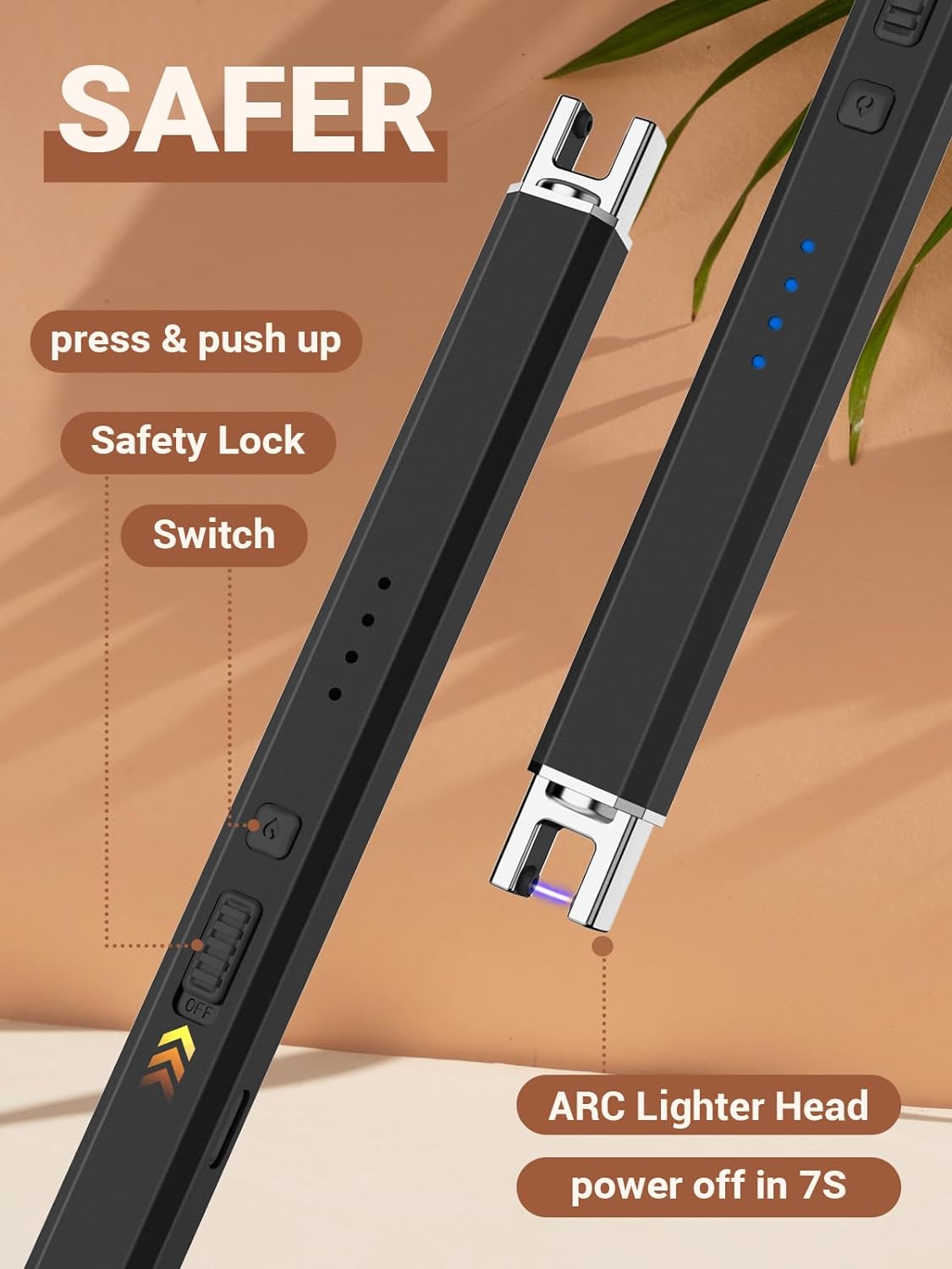- Upgraded More Secure Protection: CAREVER electronic USB lighter adopts an anti-skid safety lock, which can effectively avoid kids' misoperation. After 7S of continuous working, the rechargeable long lighters will automatically power off. Short circuit, overheat/ overload/ overcharge/ chip protections & battery safety certification are applied, and the arc lighter has passed CE RoHS & UL tests. Please rest assured & enjoy your time with CAREVER tech-gift USB candle lighter