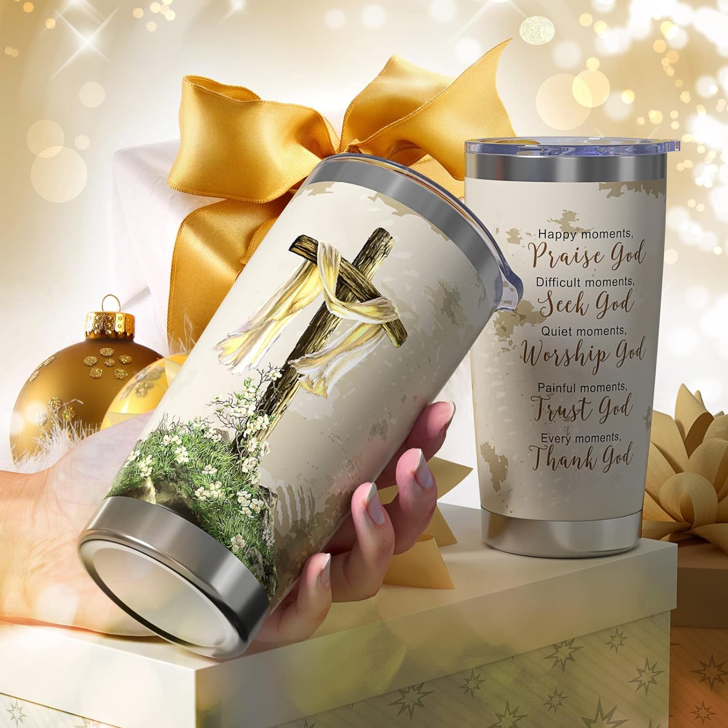 - UNIQUE CHRISTMAS GIFTS FOR WOMENThis tumbler with inspirational thoughts and prayers is the sweetest gift you can give to a loved one who is religious to remind them that they are never alone. The Happy Moments, Praise God tumbler can be given as a birthday or anniversary present, X-mas gifts, or even encouraging gifts for women going through a rough patch in life