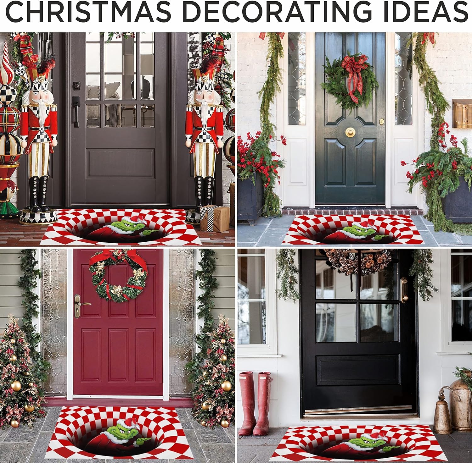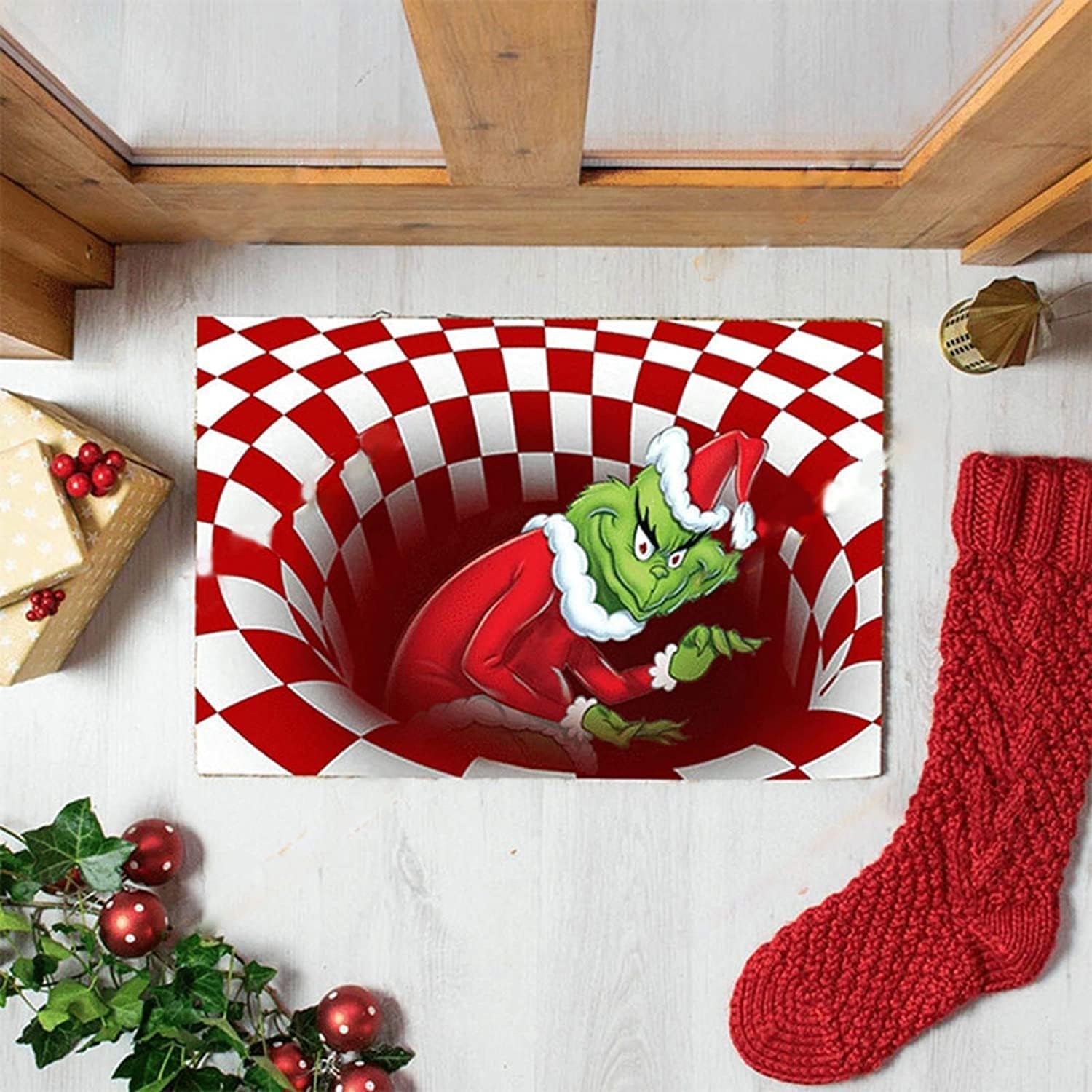 Christmas 3D Illusion Doormat Non-Slip Floor Mat Suit for Any Deck, Patio, Porch, Veranda (50 * 80CM, Red)