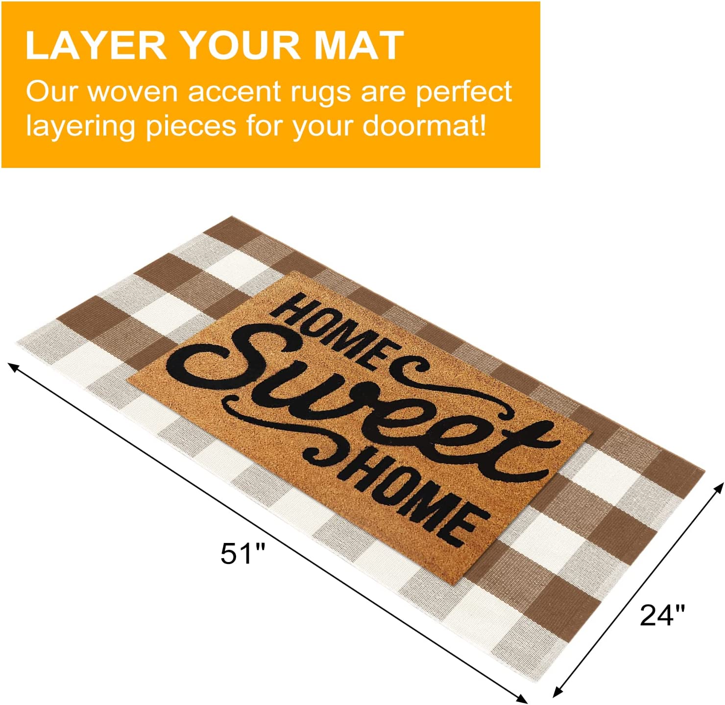 - Classic Design:front porch rug with brown and white,black and white , grey and white, blue and white checkered,a bright color impacting with neutral color, modern and timeless design!
