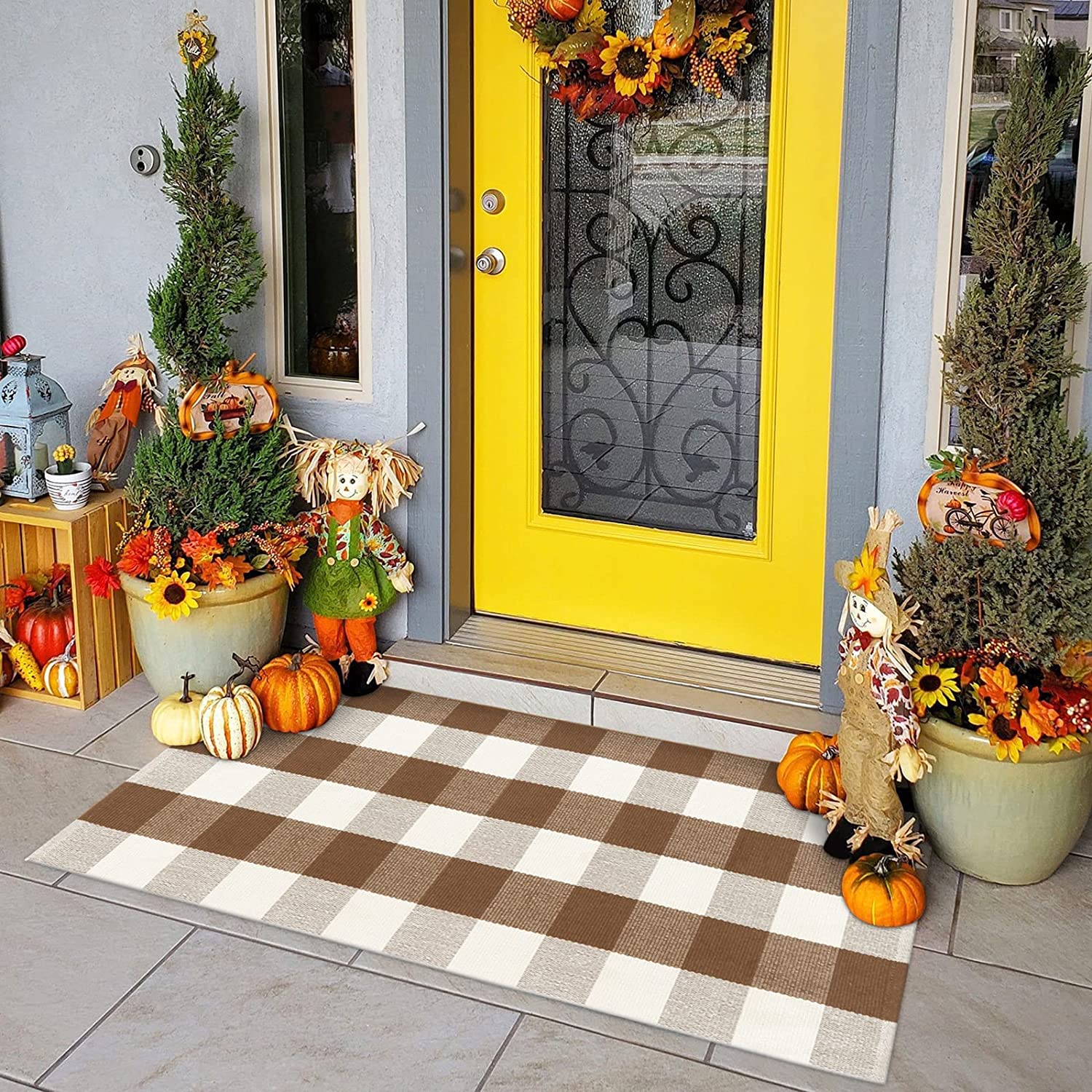 - Versatile Rug:brown and white checkered rug perfect for indoor/outdoor Halloween holiday porch decor, as a welcome fall door mat, entryway throw carpet,farmhouse,kitchen mat,living room,bedside rugs,bathroom rug.