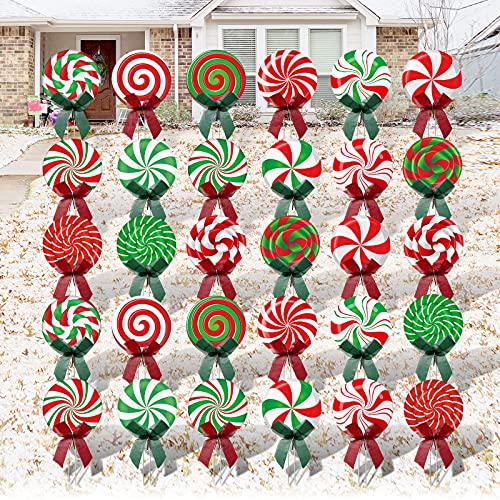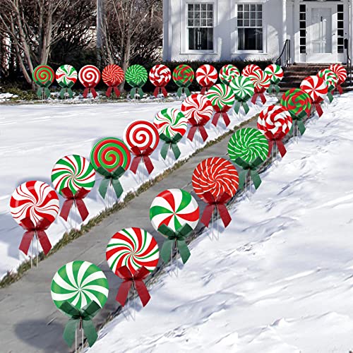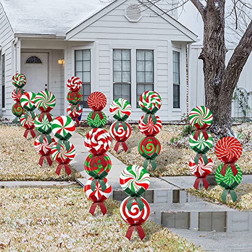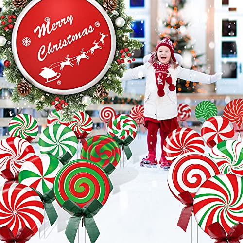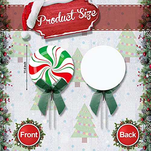 - Suitable size: these candy yard signs with stakes have the same patterns, each sign is about 11.4 inch in diameter, the stakes are about 11 inch long, the bows are 7.8 inch in diameter, so you can easily install them together to decorate your lawn, yard, Christmas tree and home