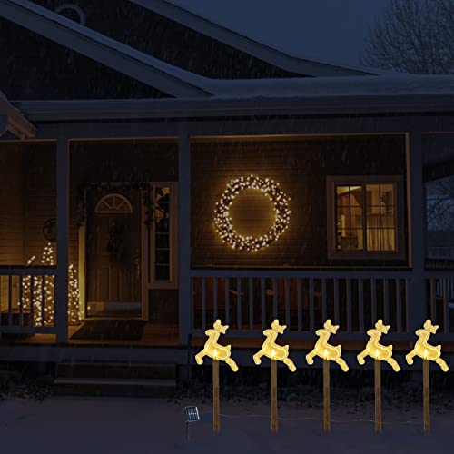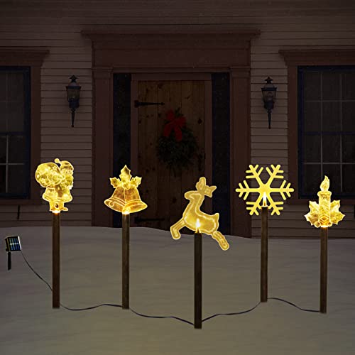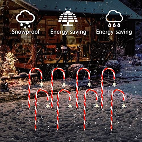 - 🎄【Cute Winter Yard Decor】 Each pack includes five stacked highlights with a winter themed appearance. Each light has a built-in warm white light LED, while the cane lamp is red.