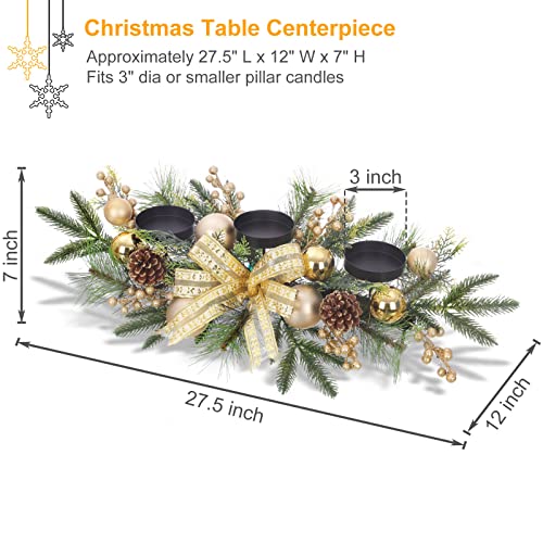 - 【Christmas Centerpiece Dimension】Each glass hurricane shade Christmas centerpieces measures approximately 3" diameter x 4" high which fits 2" dia or smaller pillar candles and tealights (not included). The dimension of whole Christmas table centerpieces is approximately 21" L x 8" W x 9" H, and it is Perfect to add a little low lighting to your Christmas celebrations.