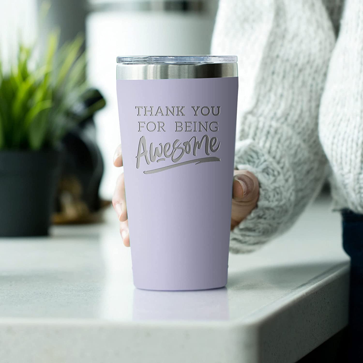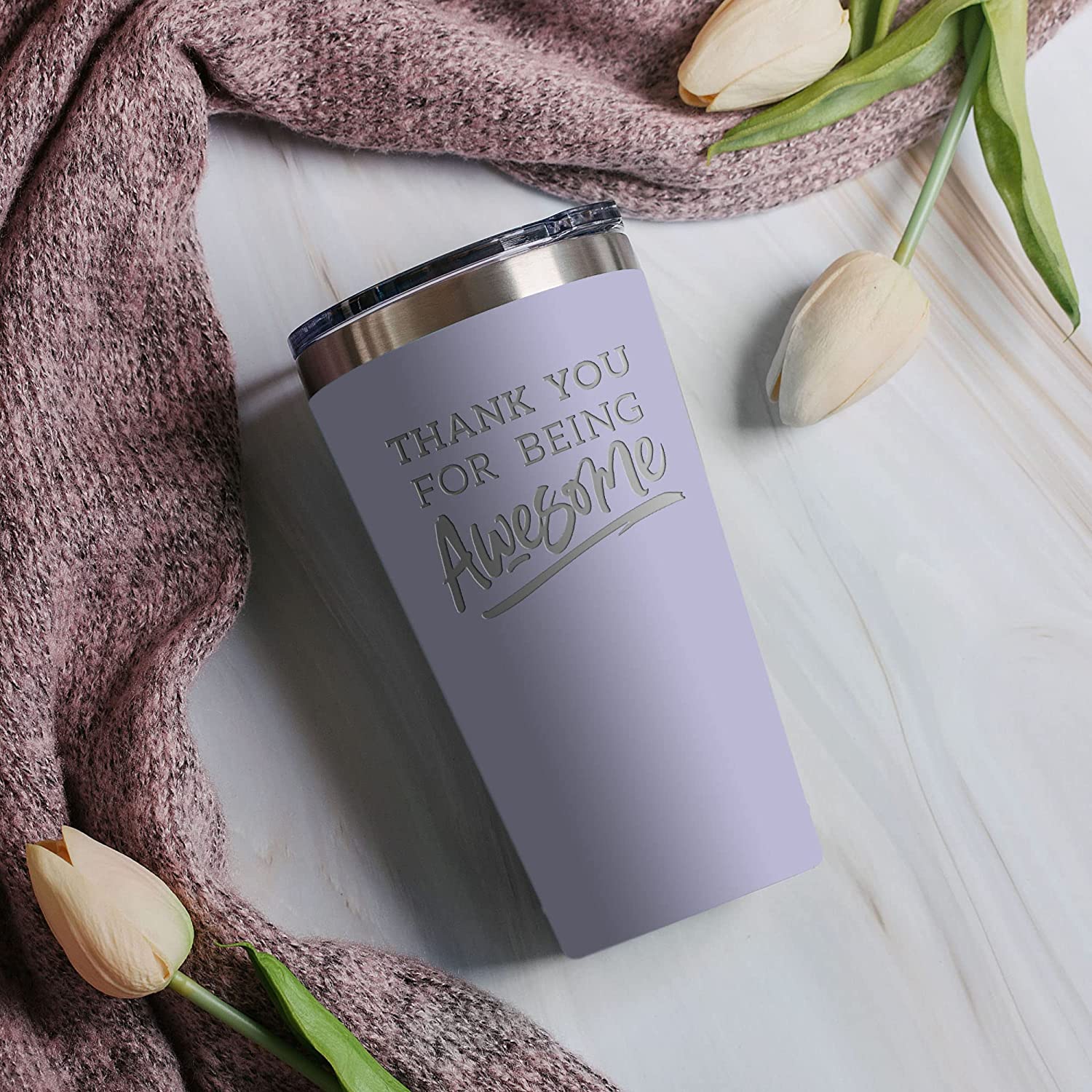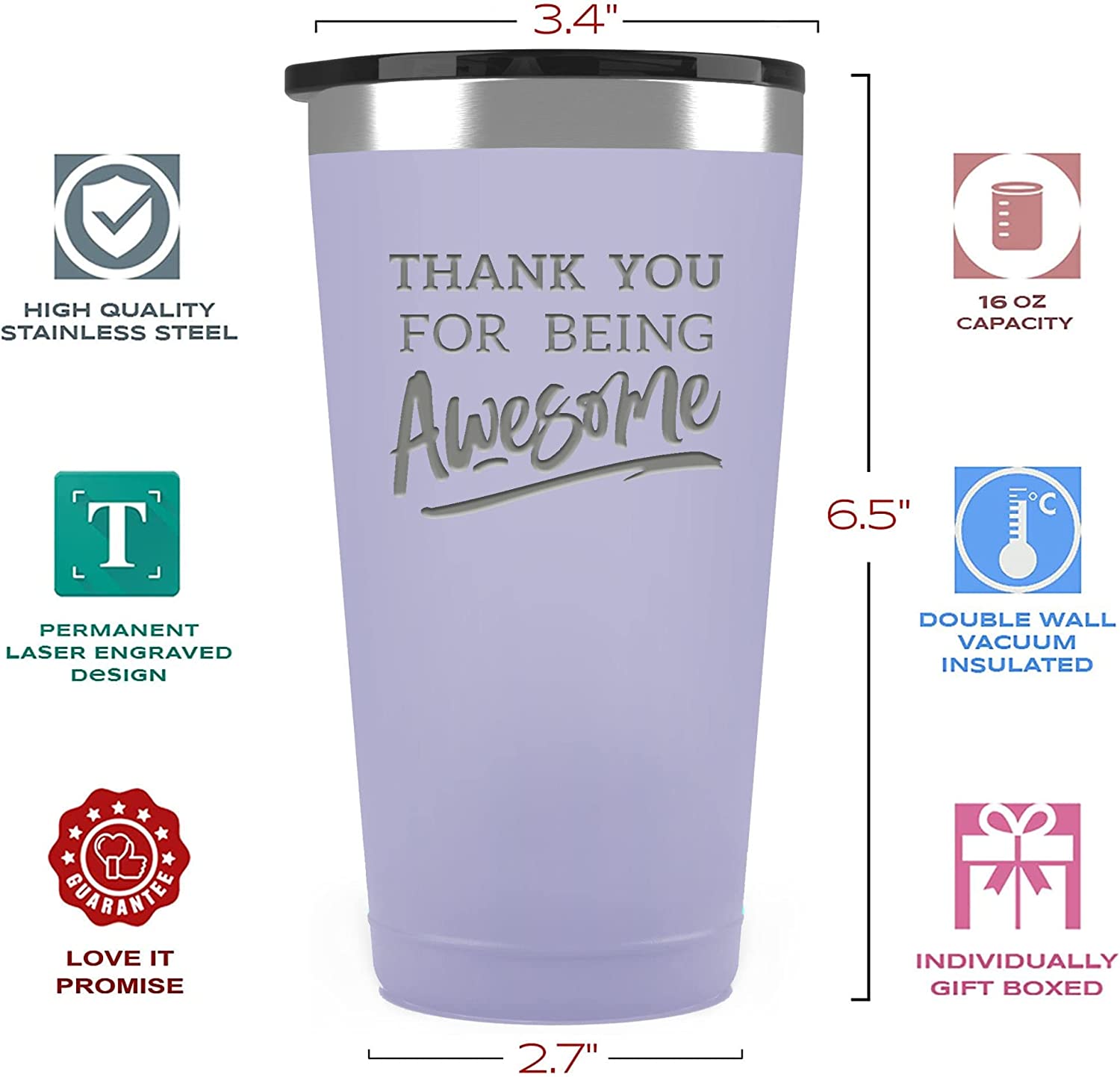 Christmas Thank You Gifts for Men/Women - Thank You For Being Awesome 16 oz Lilac Tumbler