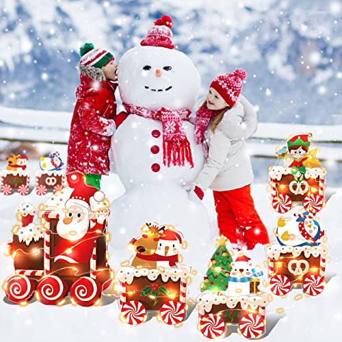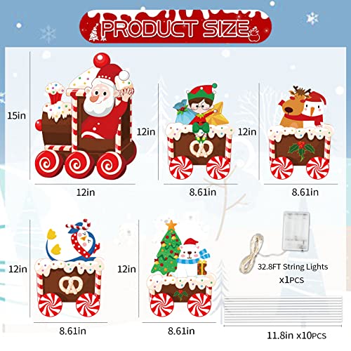 - ✔️【EASY TO USE】Our Christmas train signs come with 10 stakes, simply put two stakes into each sign and then insert them into the lawn or courtyard, then place the LED light string on them, a great addition to your Christmas night decorations.