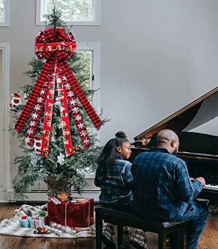 - Buffalo Plaid Christmas Tree Topper---Due to packaging and folding methods, Christmas tree topper bows may be flat and collapsed, can pull the bow very fluffy before use.