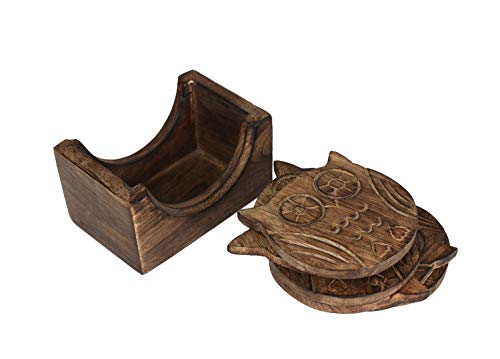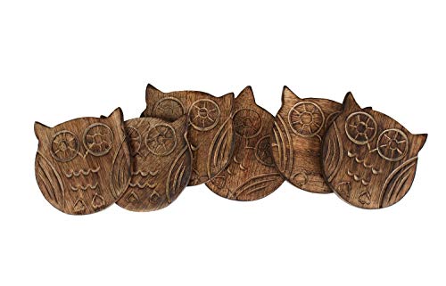 - A charming table accessory for your home, this set of 6 Owl coasters is hand carved in sustainable mango wood, known for its beautiful color and finish.