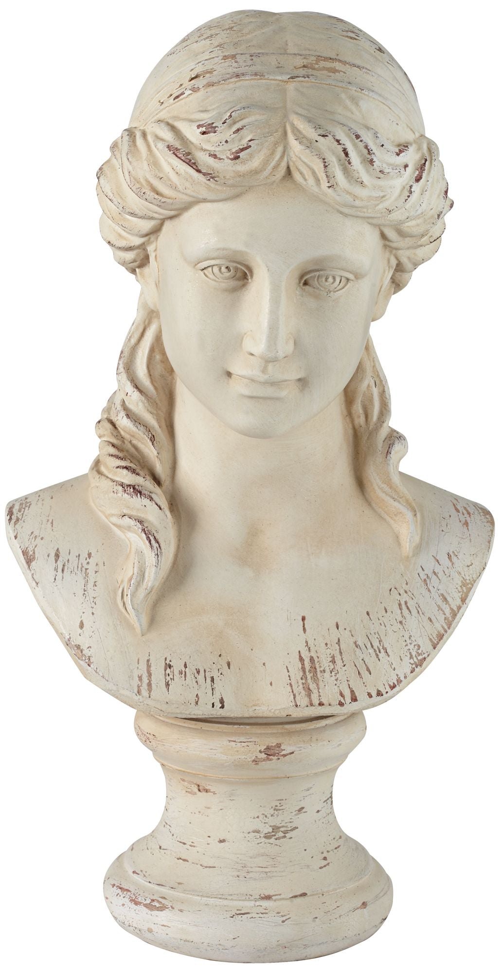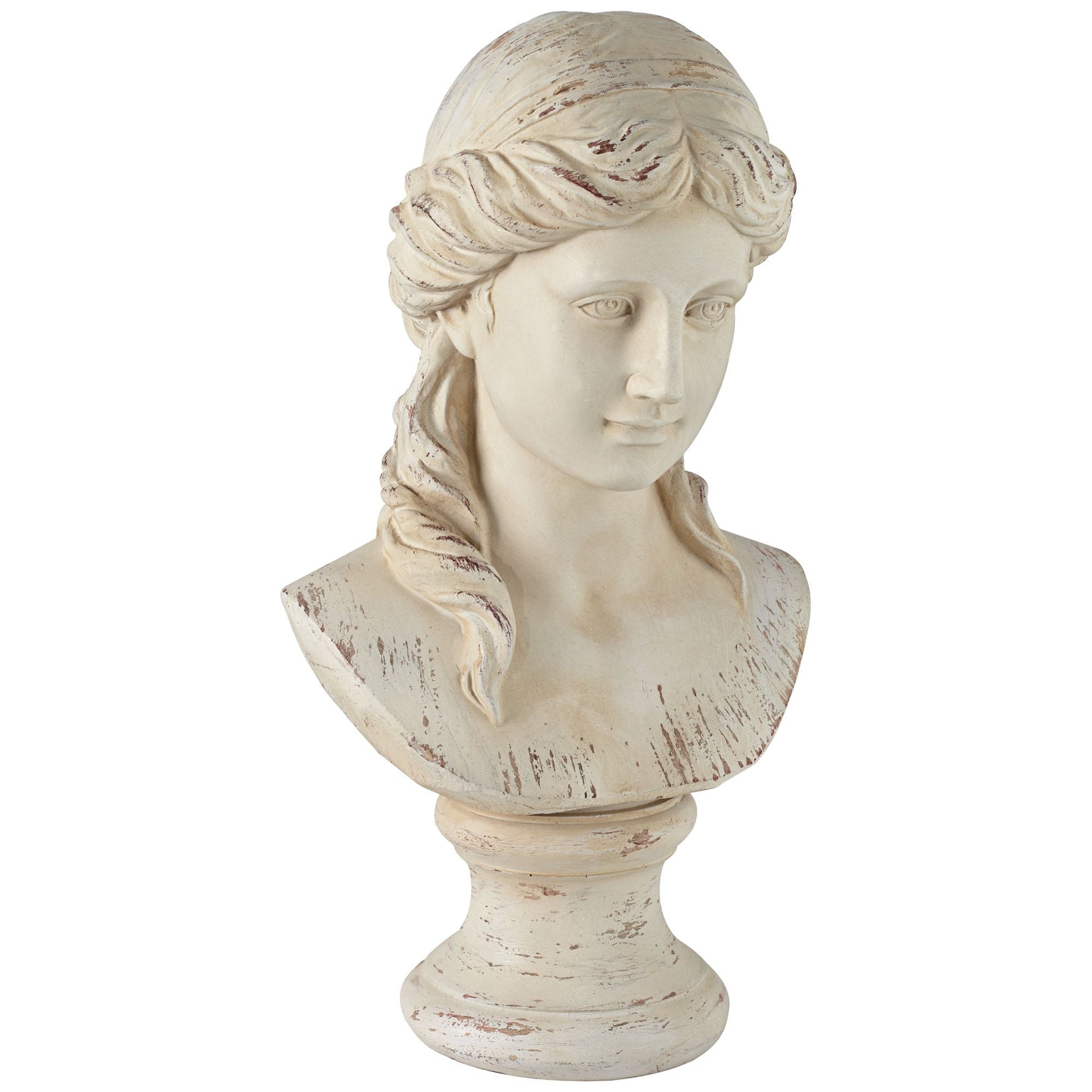 Add classic style to any room with this enchanting Greek bust sculpture. A gently distressed antique white finish enhances its serene grace. From the Kensington Hill brand of home decor accents. *- 17 1/2" high x 9 1/2" wide x 8 1/2" deep. *- Classic Greek-style bust sculpture. From the Kensington Hill decor brand. *- Antique white finish with distressed markings. *- Cast resin construction, realistic details. *- Details in the round. both front and back.