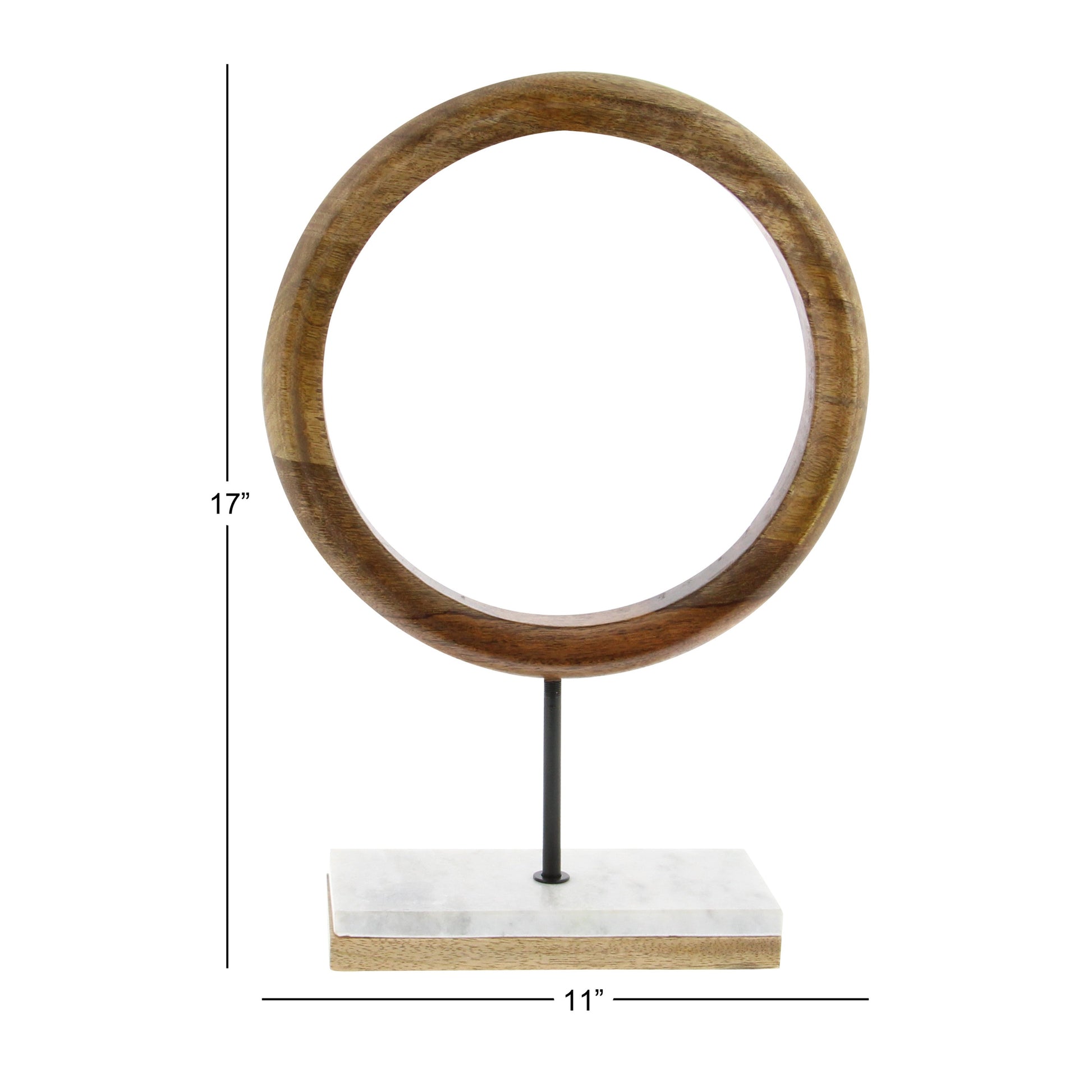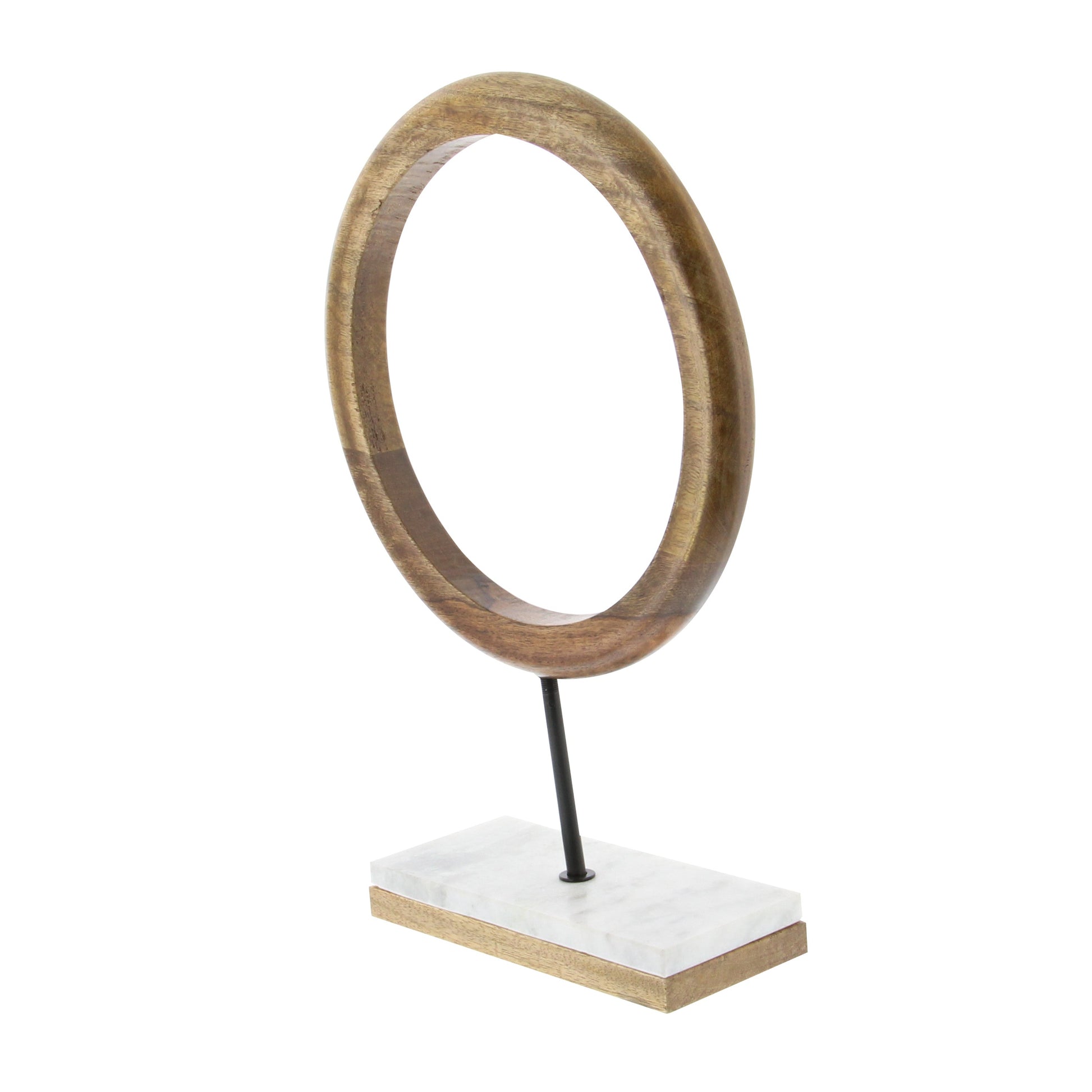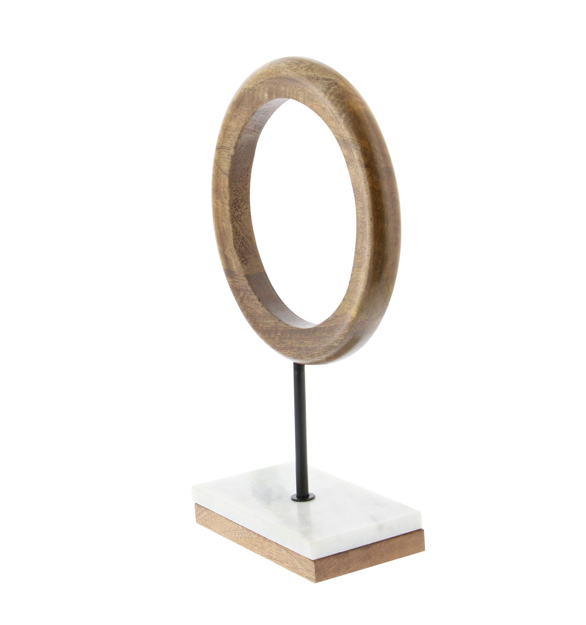 Contemporary Mango Wood And Marble Ring Sculpture, Brown