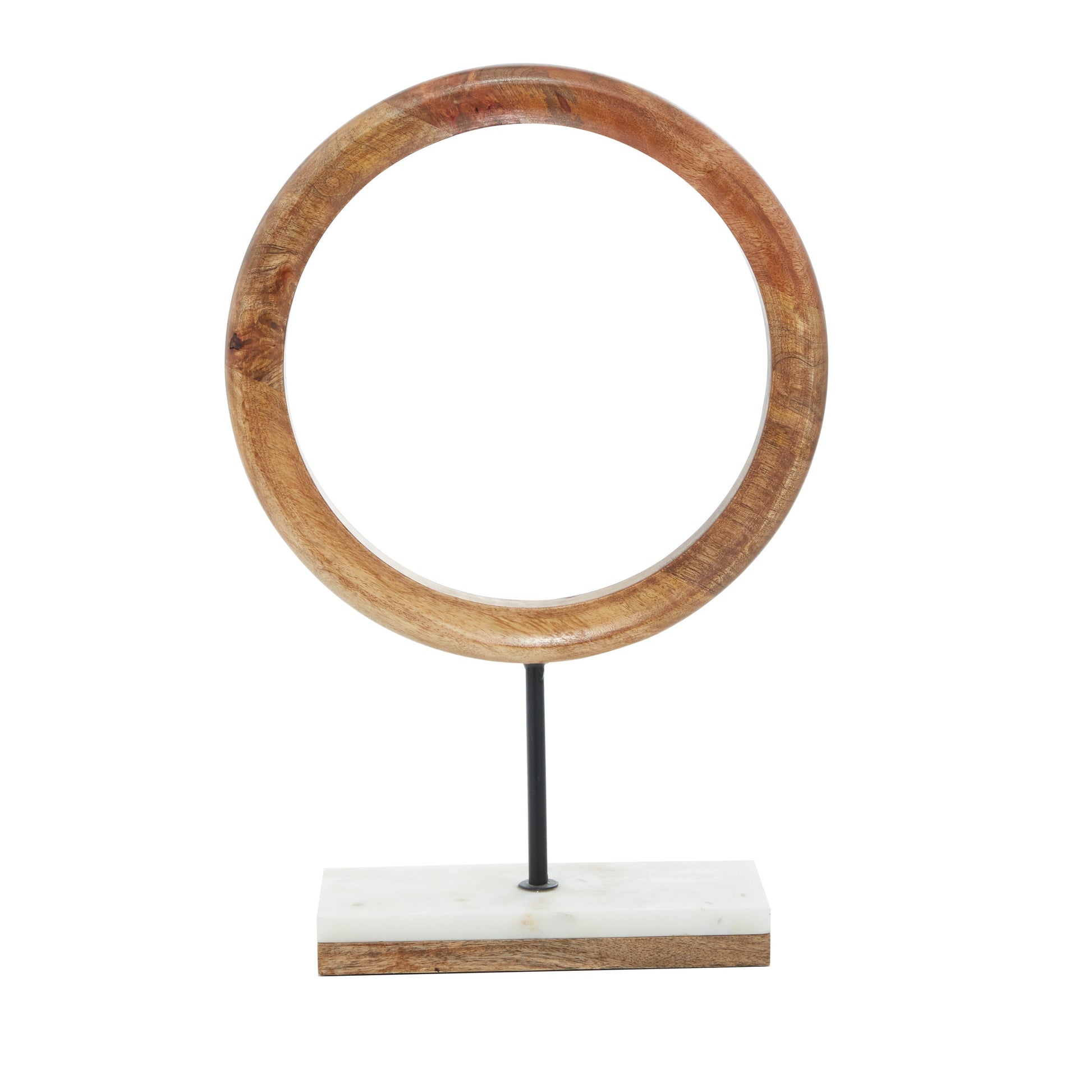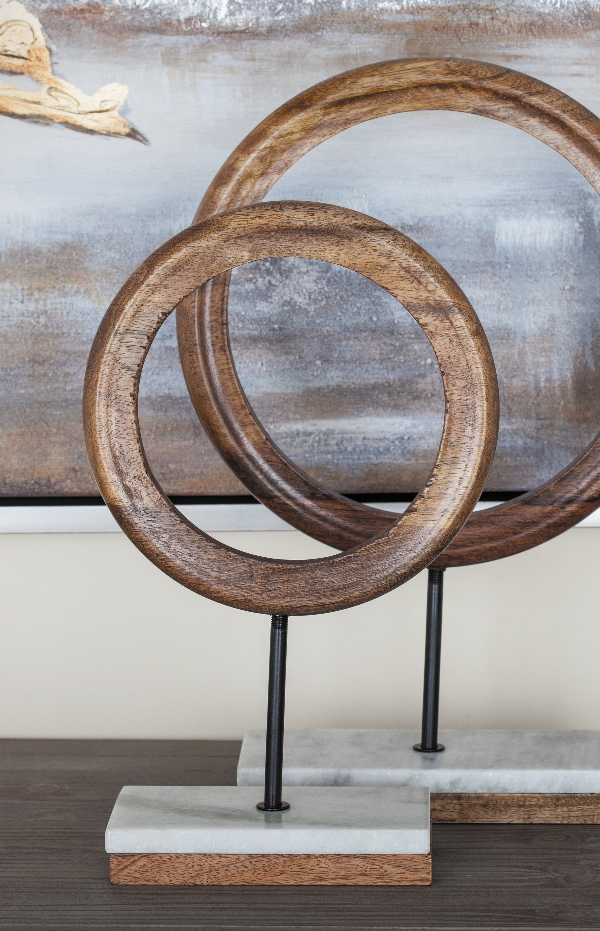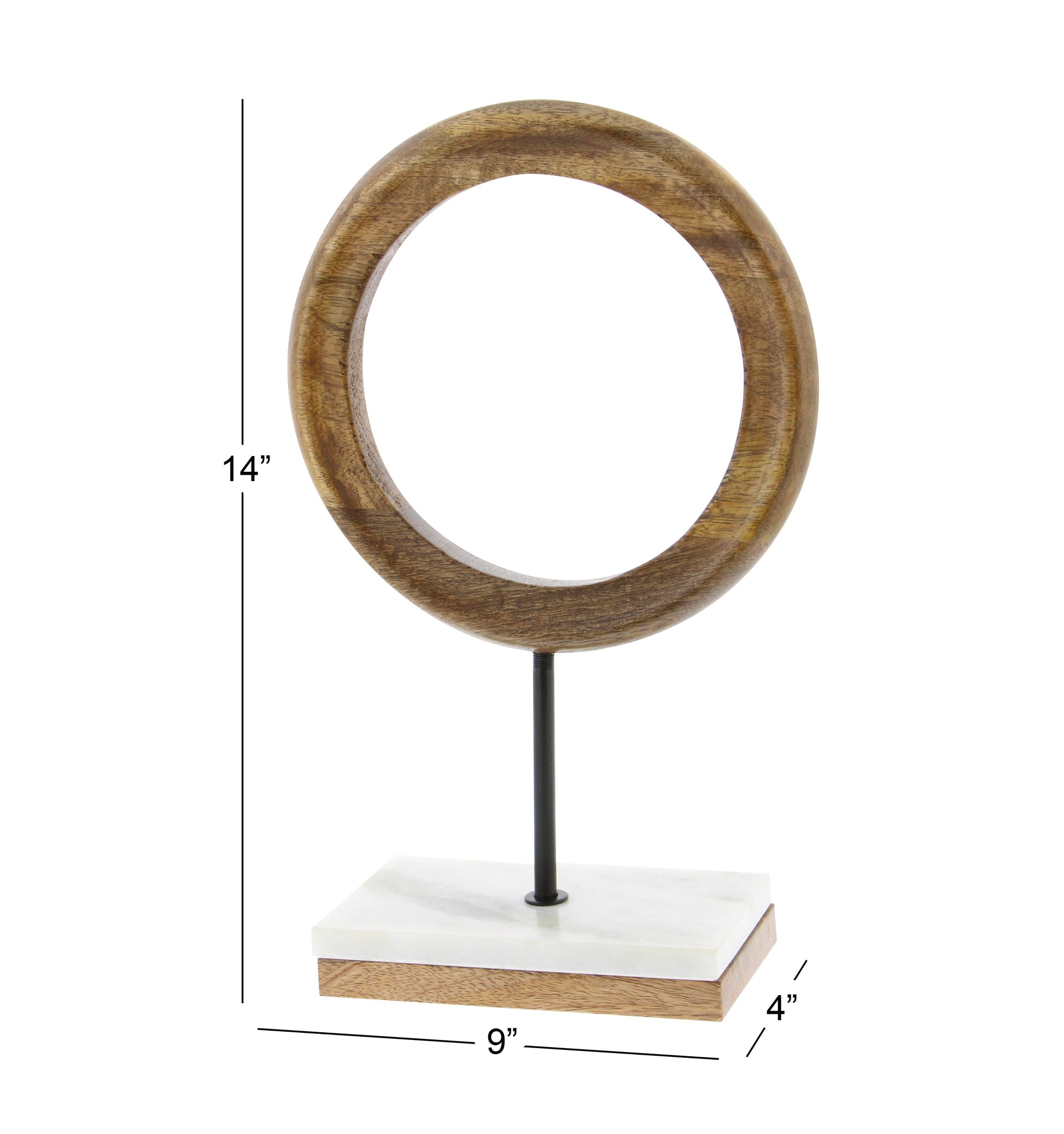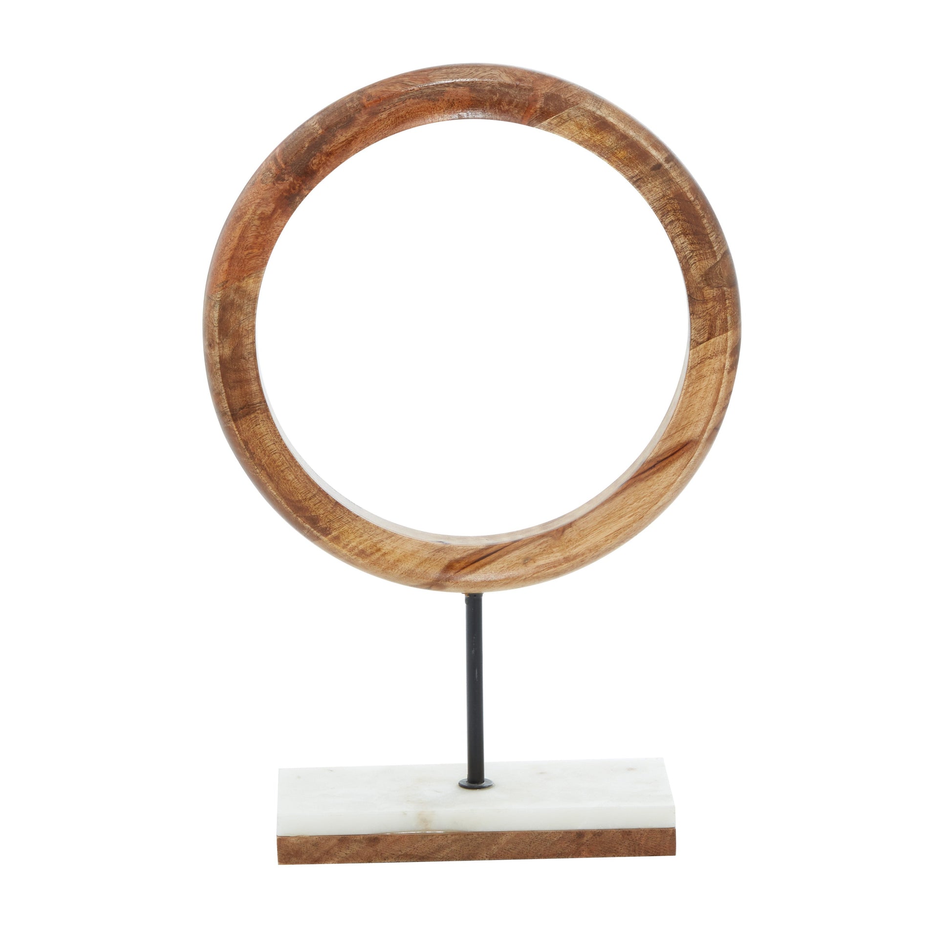 Contemporary Mango Wood And Marble Ring Sculpture, Brown