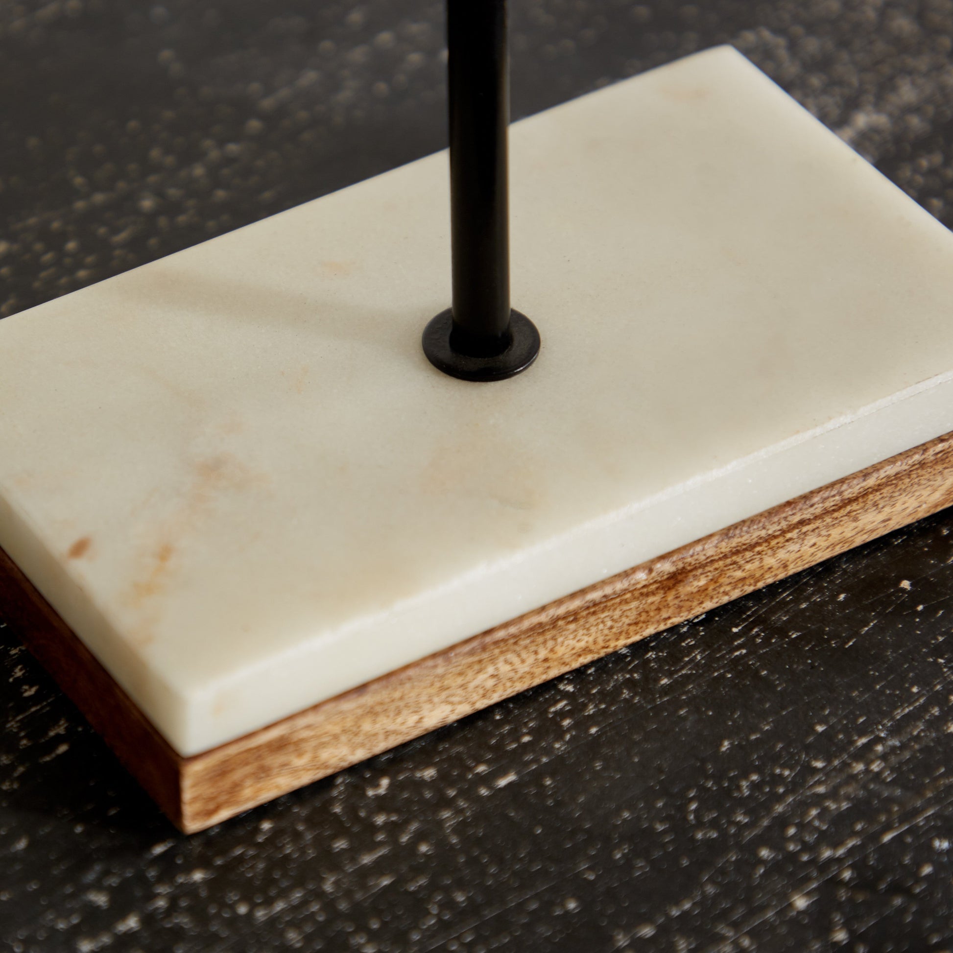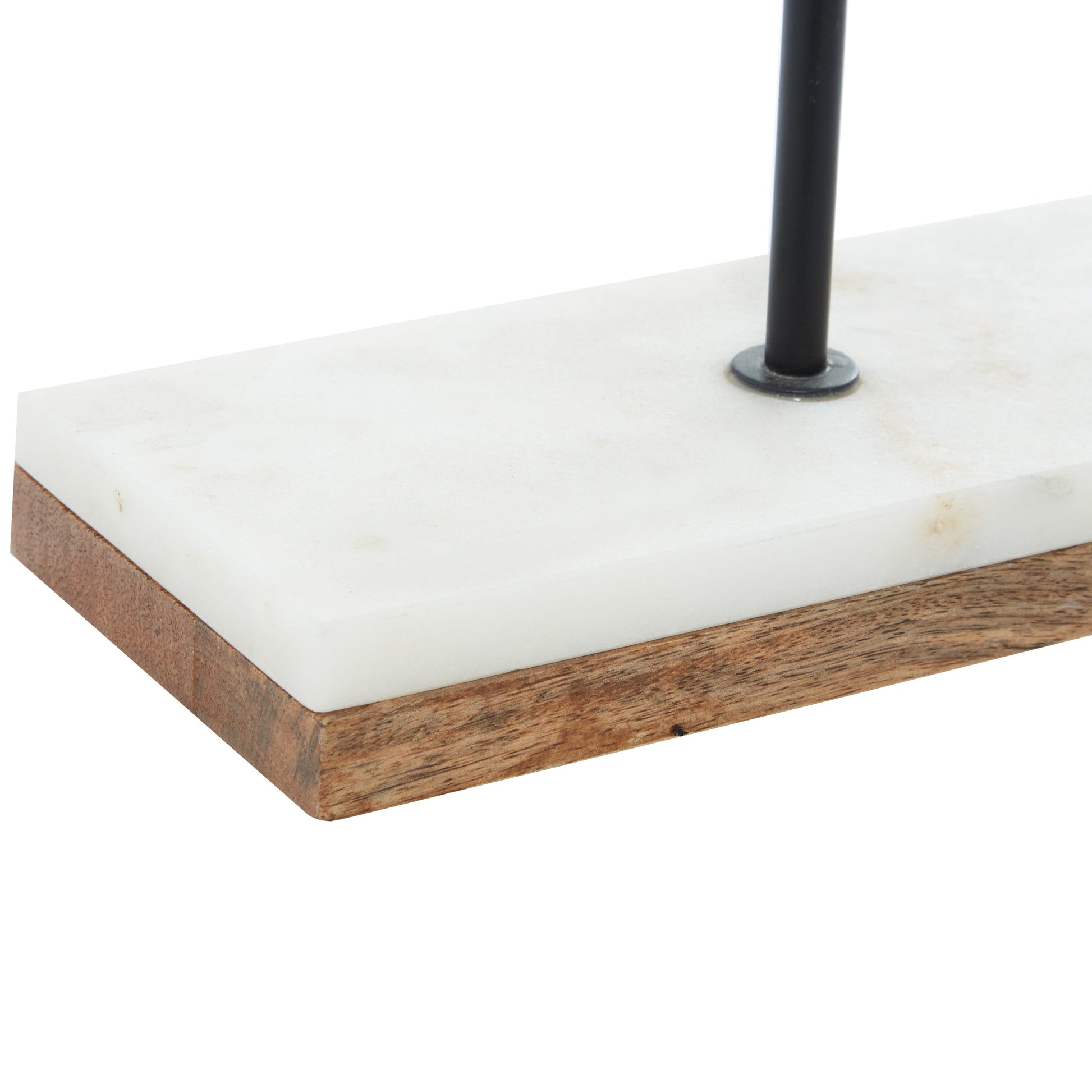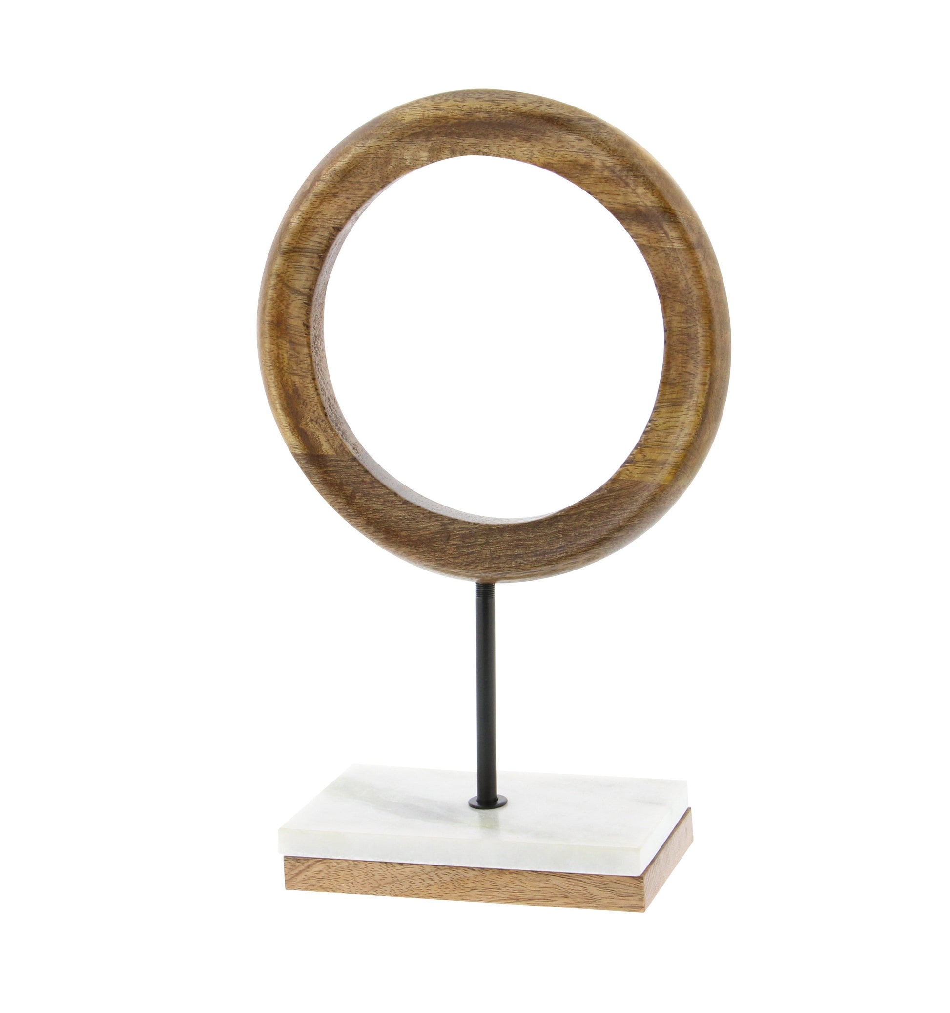Rustic Reflections wood metal marble ring, matte brown ring made of mango wood, metallic black iron tubular post, rectangular base made of white marble and matte brown mango wood *- Features a wooden ring figure in a stained brown finish *- Features a tubular iron post in a matte black finish *- Supported by a rectangular white and brown base made of mango wood and marble