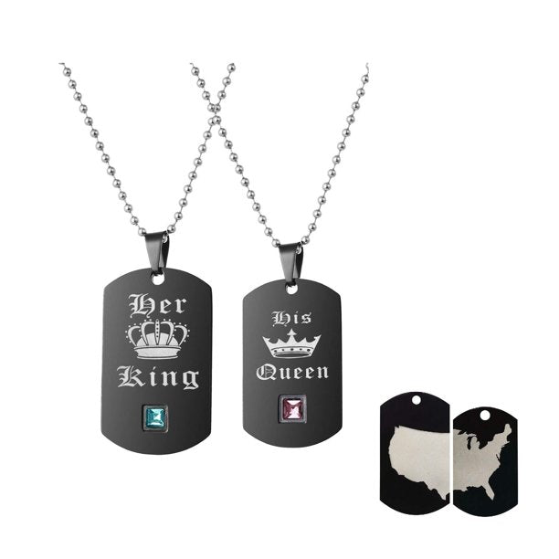 - Item Style: his her necklace set for couples, engraved his queen and her king, and back side engraved with US map, romantic gift for you and your lover.