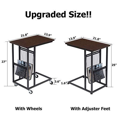 - [Upgraded Size]: 21.8"*13.9" enlarged tabletop provides enough space for holding a laptop, coffee, snacks, etc. With casters on the height is about 27".With adjustable feet on the height is about 25". Perfect height as a TV tray, laptop table, snack table, etc.