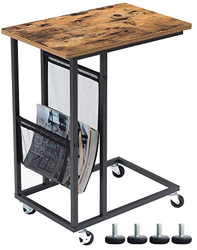Couch Side Table - Industrial End Table C Shaped with Side Pocket